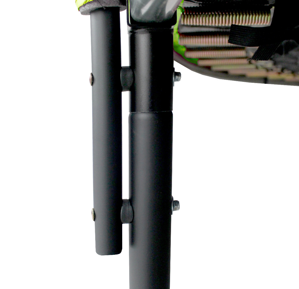The circular Hi-Ten reinforced trampoline construction is made of high-quality galvanized steel with excellent corrosion resistance. The U-legs have a powder-coated finish.