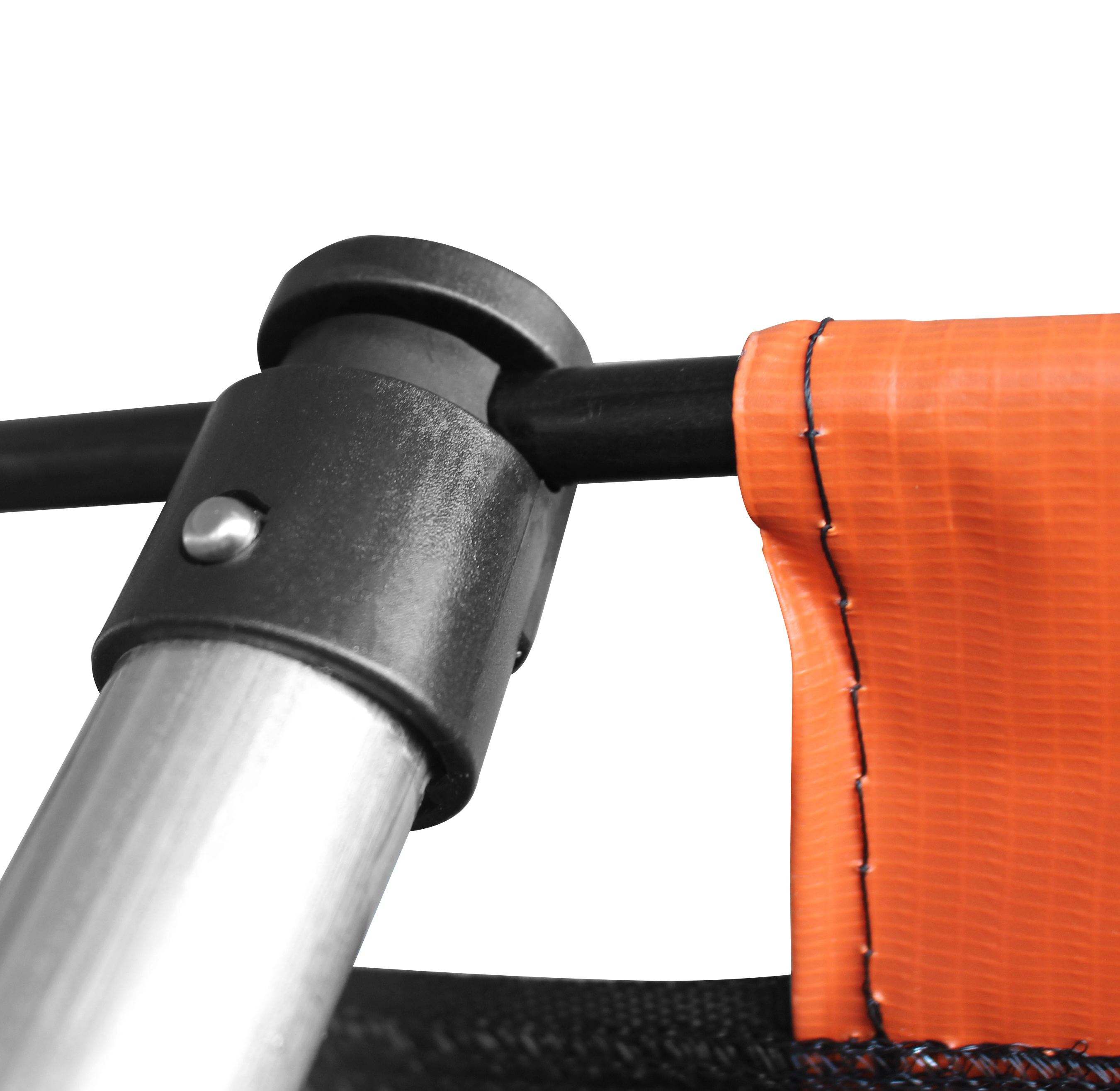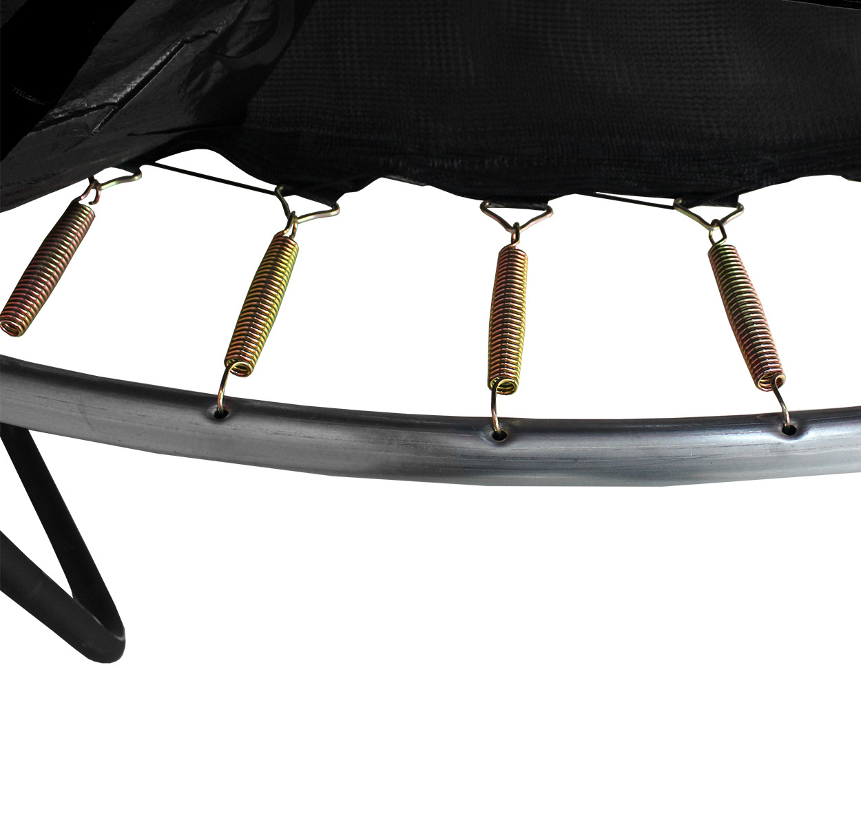 The circular Hi-Ten reinforced trampoline construction is made of high-quality galvanized steel with excellent corrosion resistance, and the U-legs have a powder-coated finish.