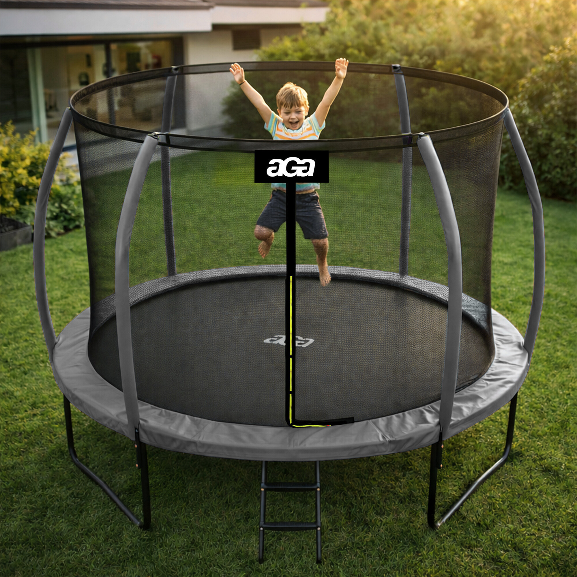 The Aga trampoline with an internal safety net was specially designed and manufactured for safe fun for both children and adults.