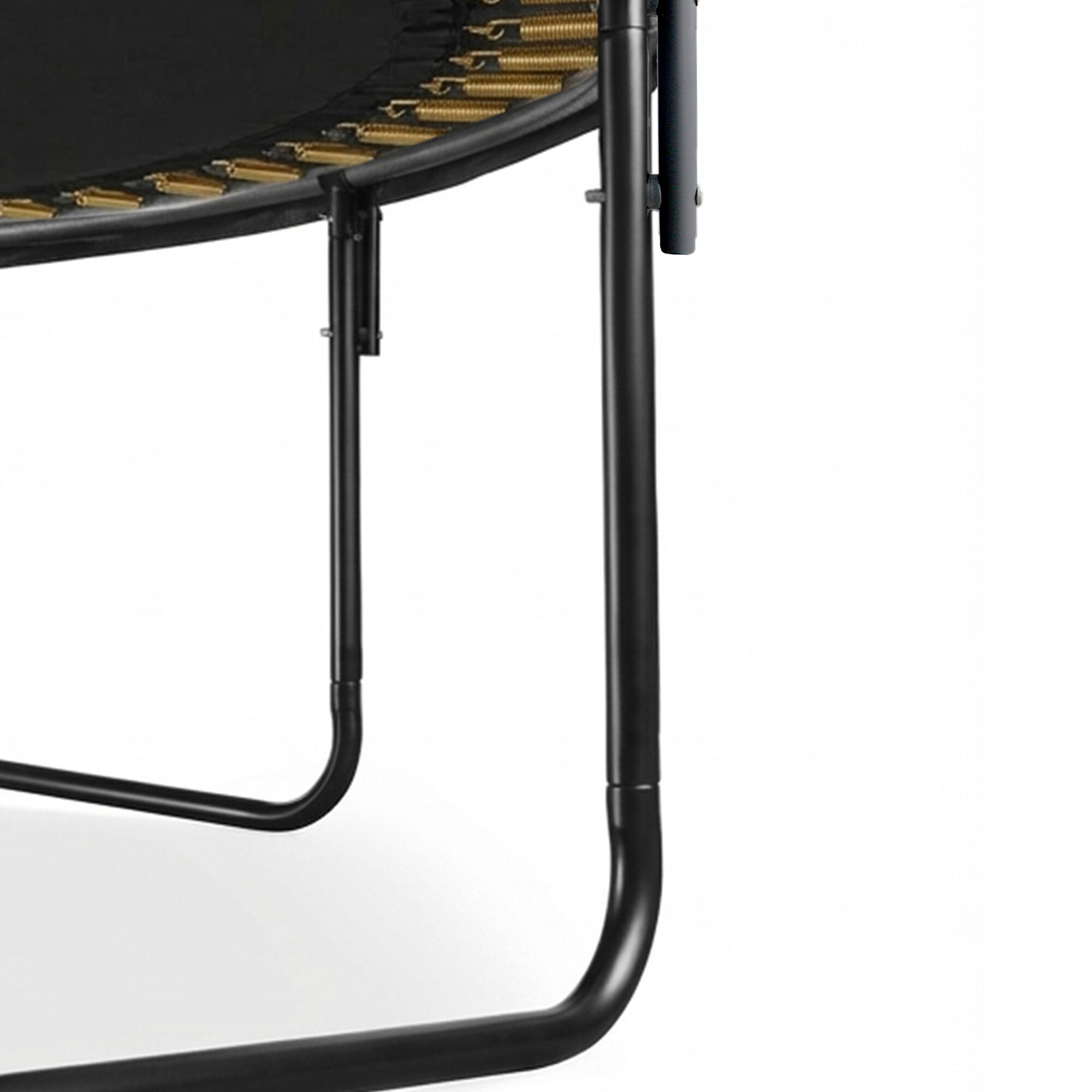 The circular Hi-Ten reinforced trampoline construction is made of high-quality galvanized steel with excellent corrosion resistance, and the legs have a powder-coated finish.