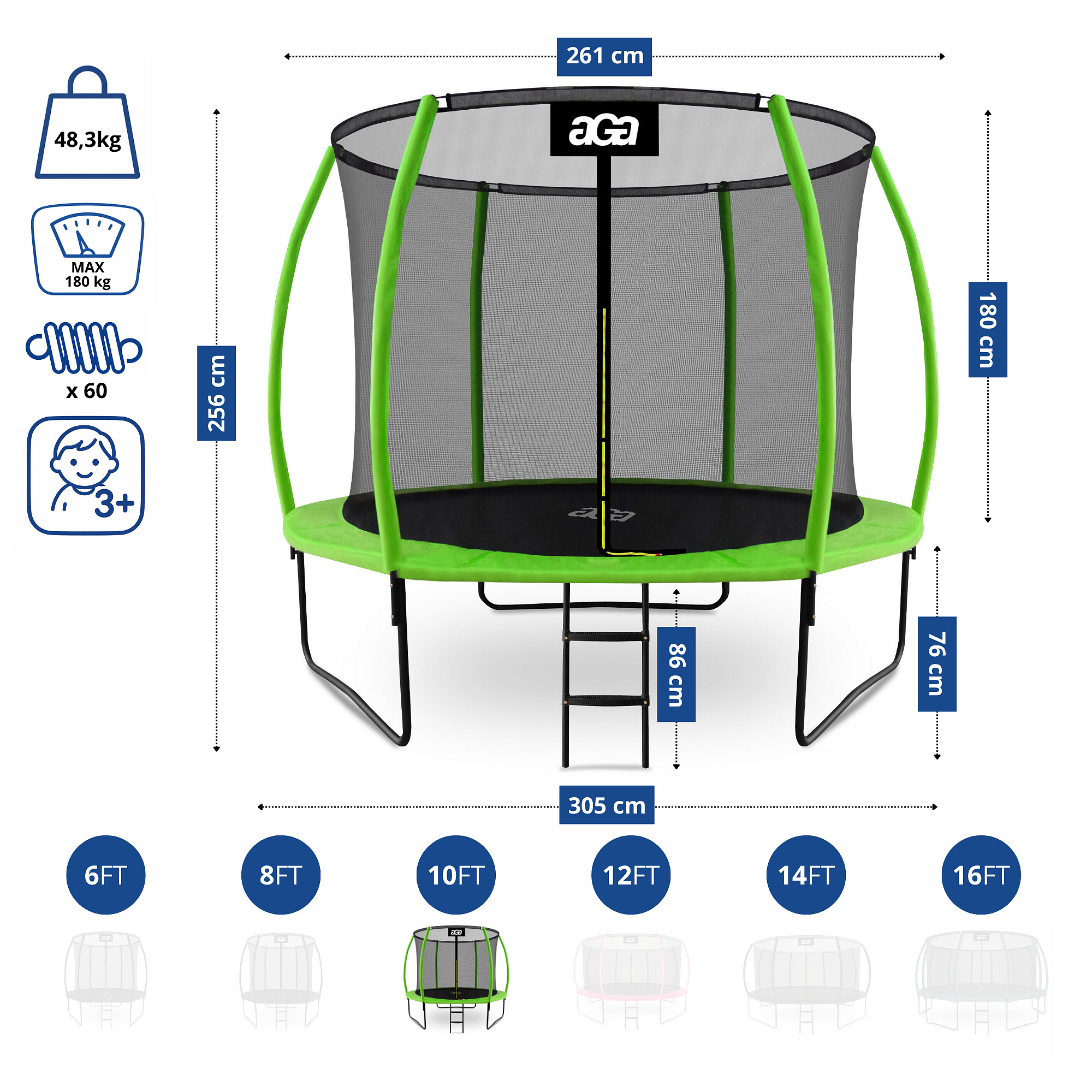 - Trampoline 305 cm (10 ft) - (frame + poles + foam pole protectors + screws)