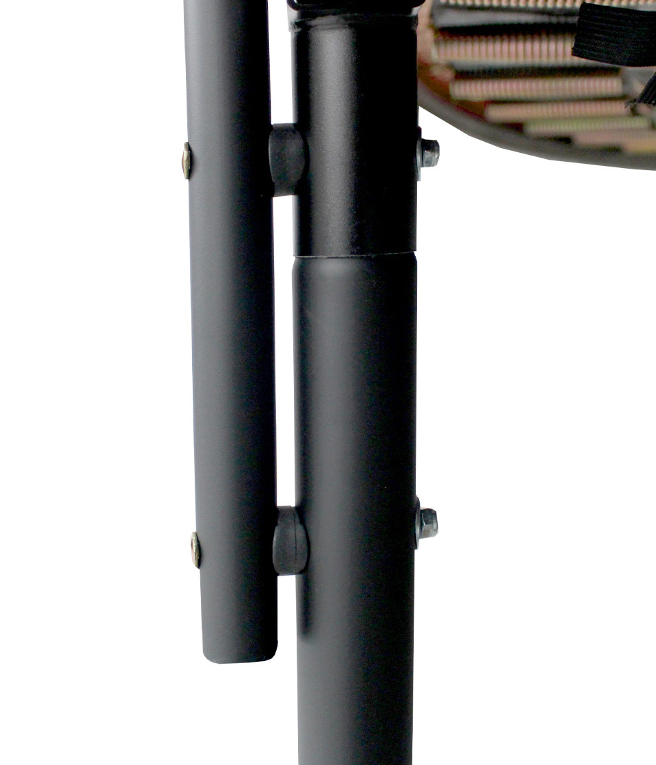 The circular Hi-Ten reinforced trampoline construction is made of high-quality galvanized steel with excellent corrosion resistance, and the legs have a powder-coated finish.