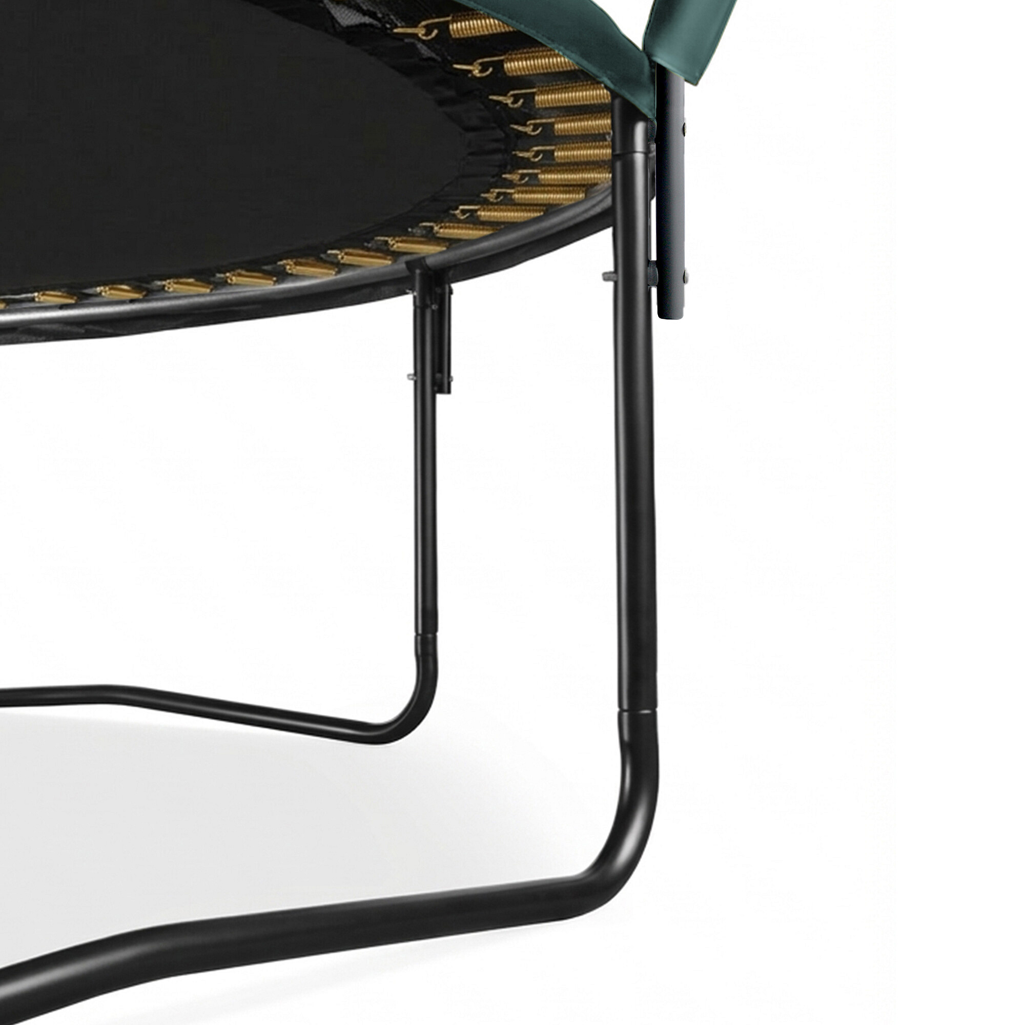 The circular Hi-Ten reinforced trampoline construction is made of high-quality galvanized steel with excellent corrosion resistance, and the legs have a powder-coated finish.