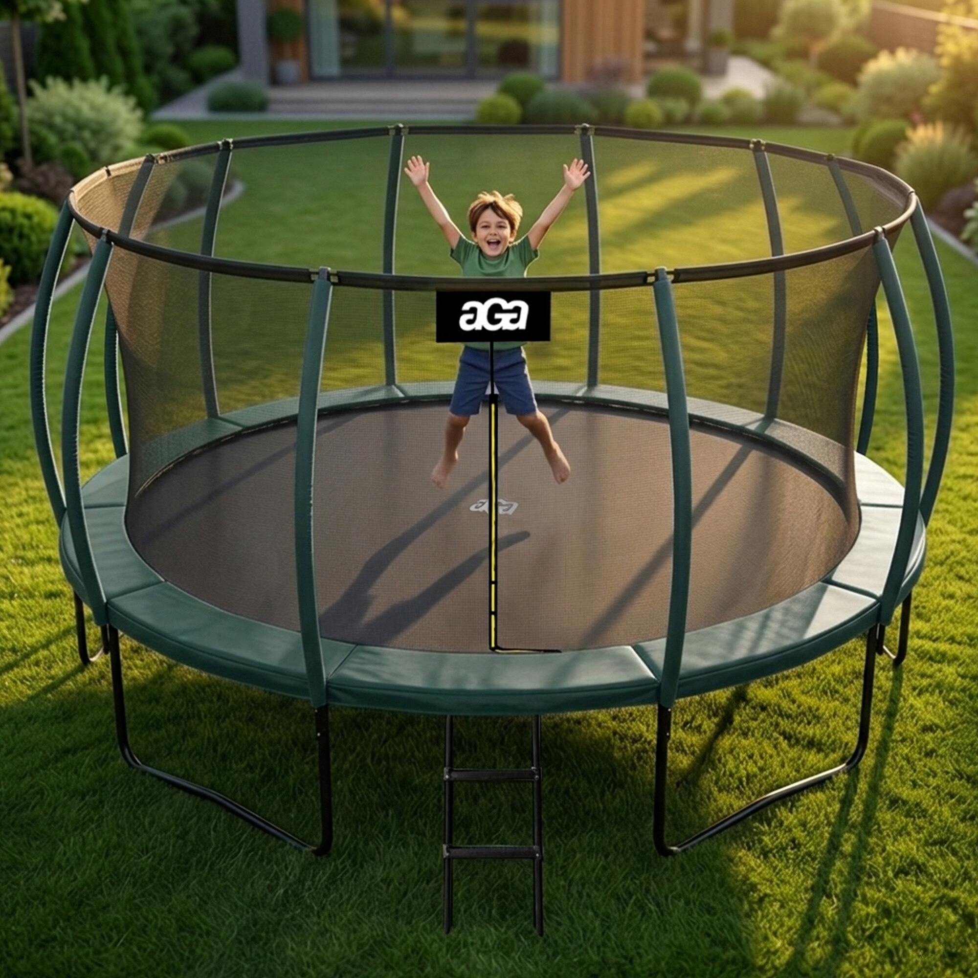 The Aga trampoline with an internal safety net was specially designed and manufactured for the safe fun of children and adults.