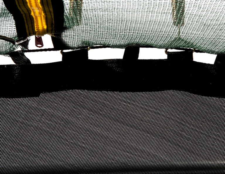 The rebounding surface of the trampoline is made of polypropylene fabric (PP Mesh) with a water resistant surface and UV resistance.