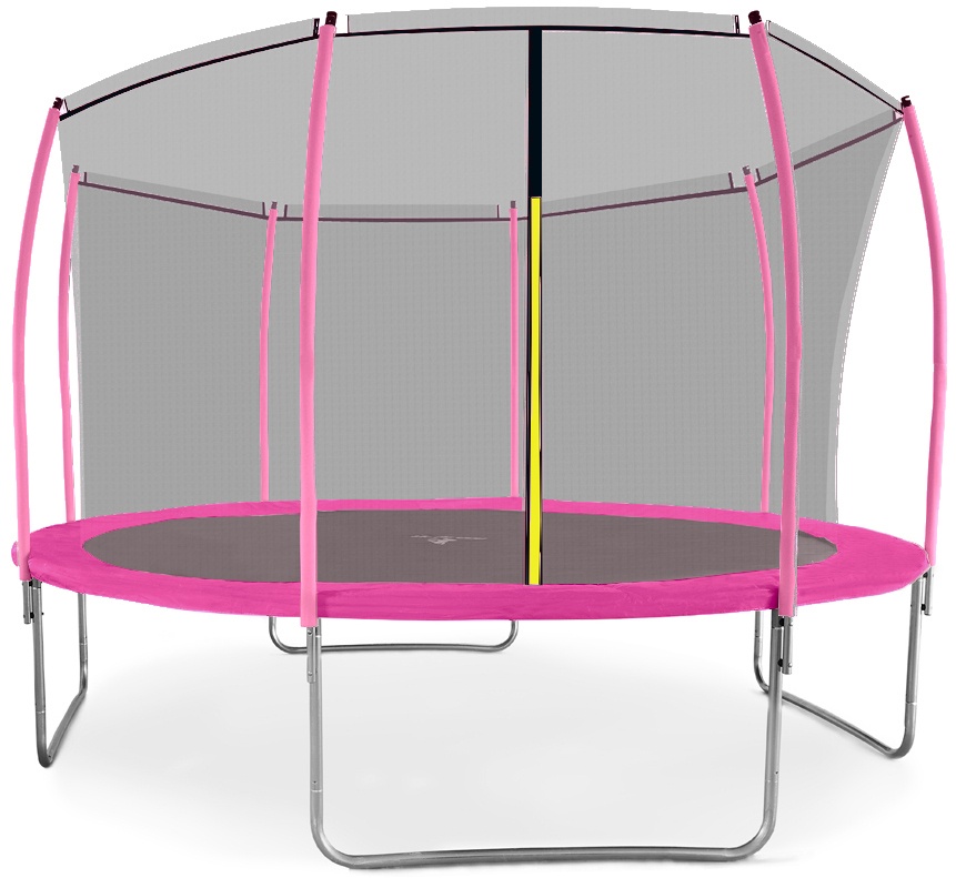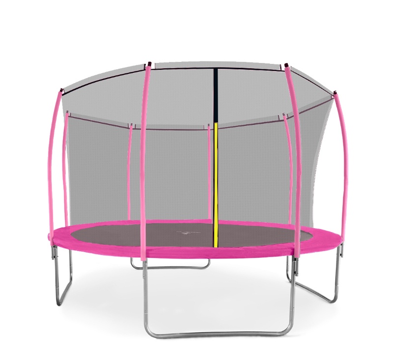 The upper protective net has a zippered entrance with a safety lock to prevent unintentional release. Maximum safety is ensured by a padded perimeter belt that covers the springs around the entire perimeter of the trampoline.