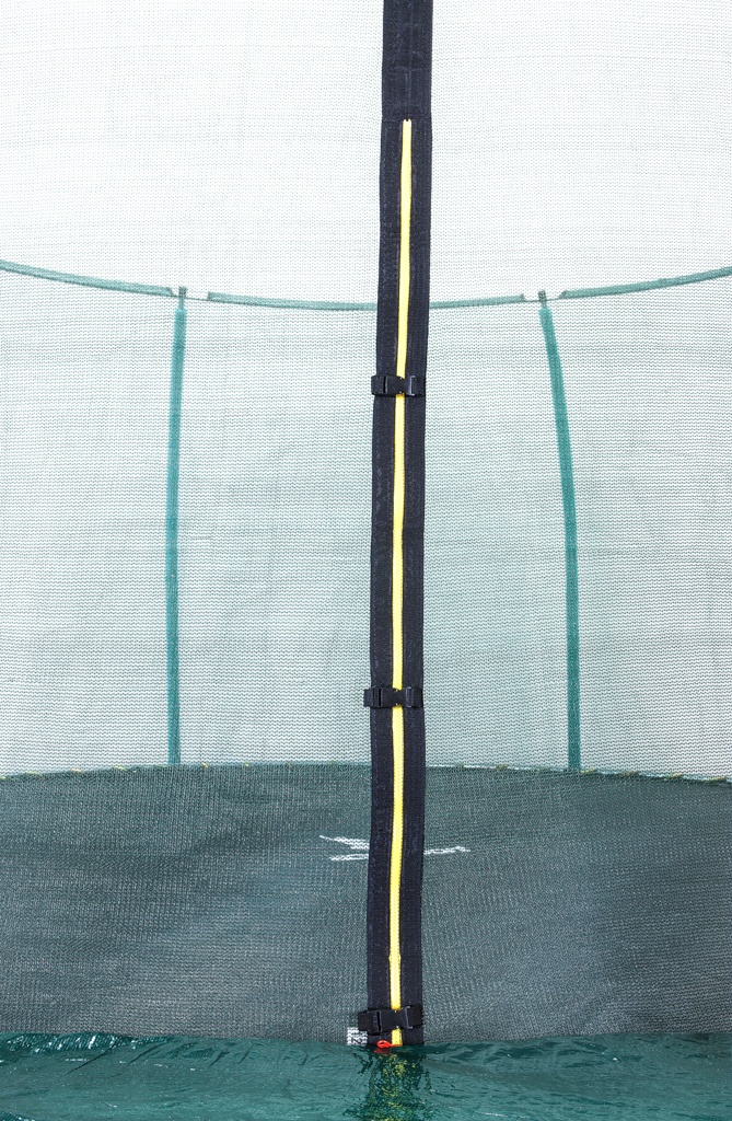 The upper protective net has a zippered entrance with a safety lock to prevent unintentional release.