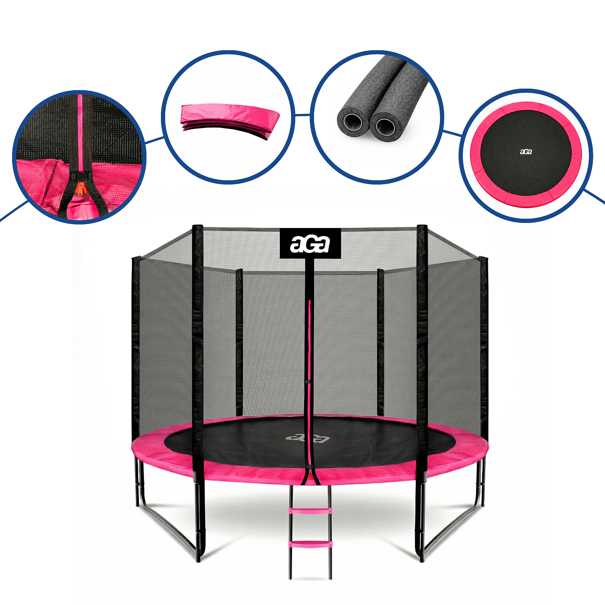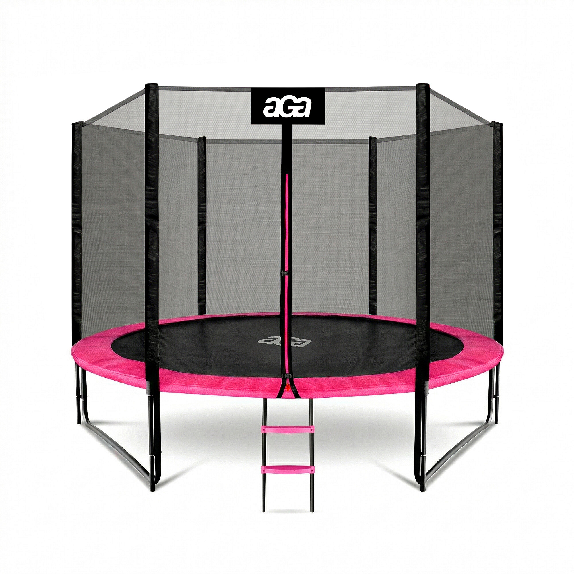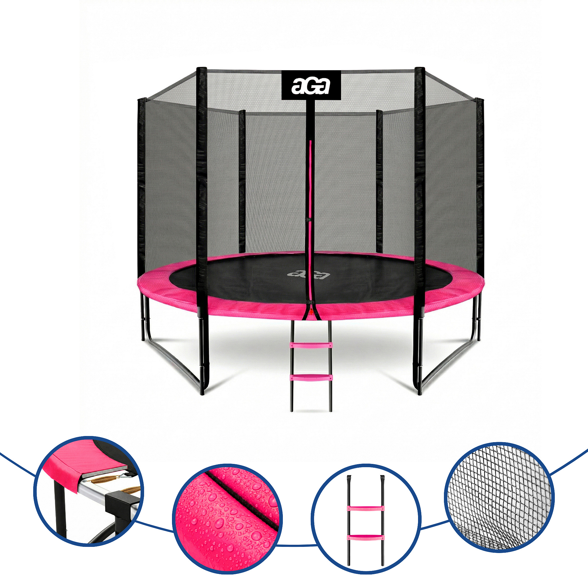 Specifications of the Aga SPORT PRO 305 cm Pink Trampoline with Safety Net and Ladder.
