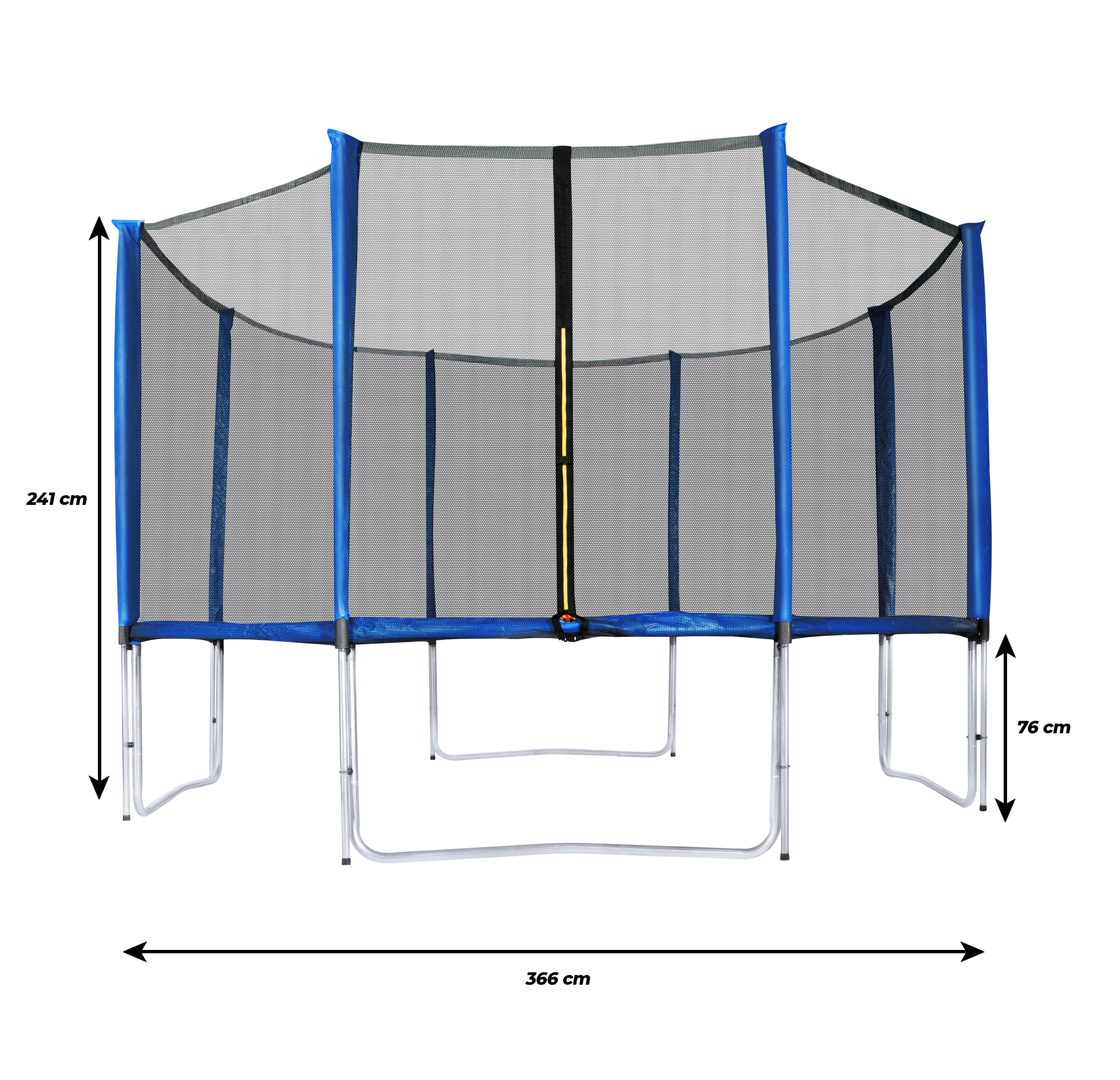 - Total height of the trampoline: 241 cm (12.12 ft)