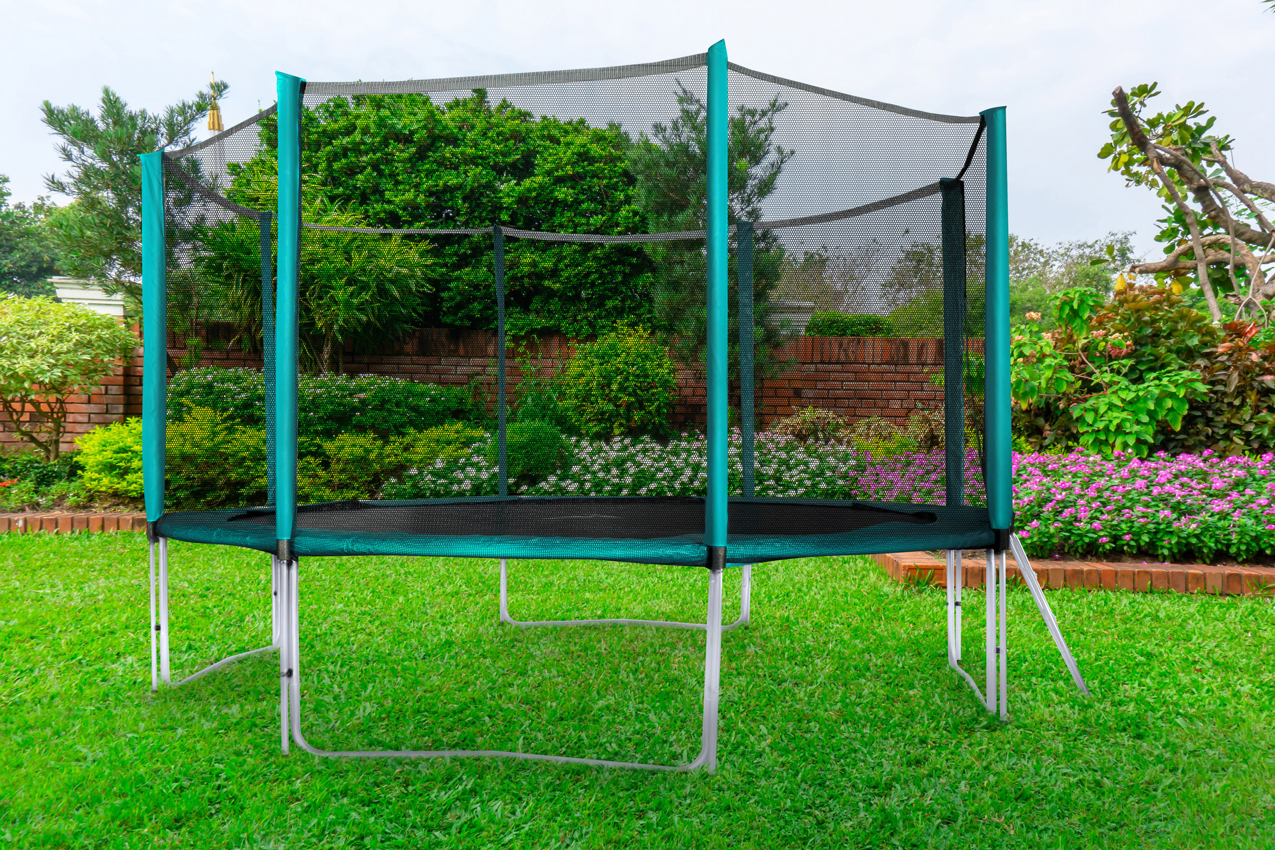 Maximum safety is ensured by the padded perimeter belt (spring cover), which covers the springs around the entire perimeter of the trampoline.