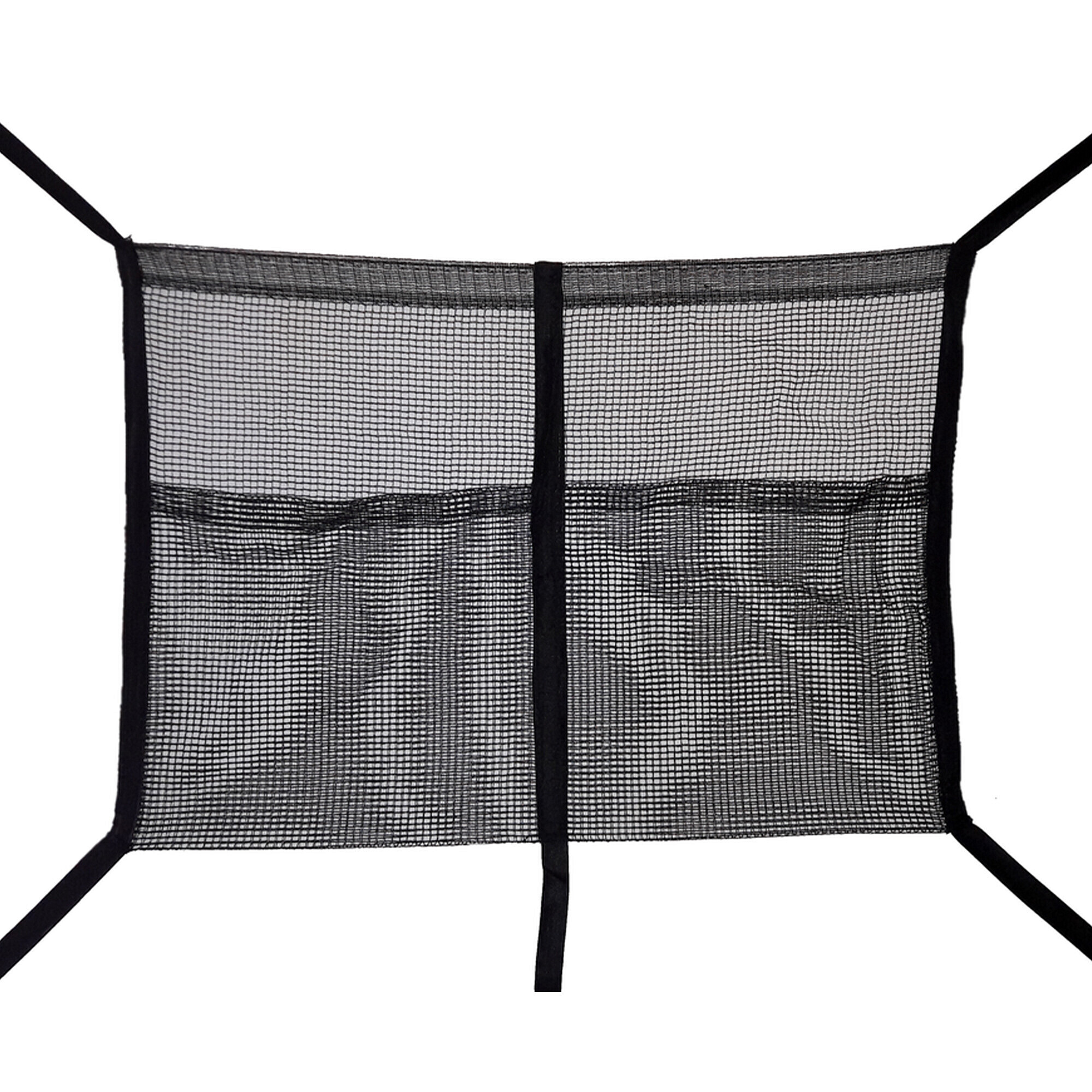The bouncing surface is made of special polypropylene fabric with a water-repellent finish and high bounce. The upper protective net has an entrance equipped with a zipper and secured with a safety lock to prevent accidental opening.