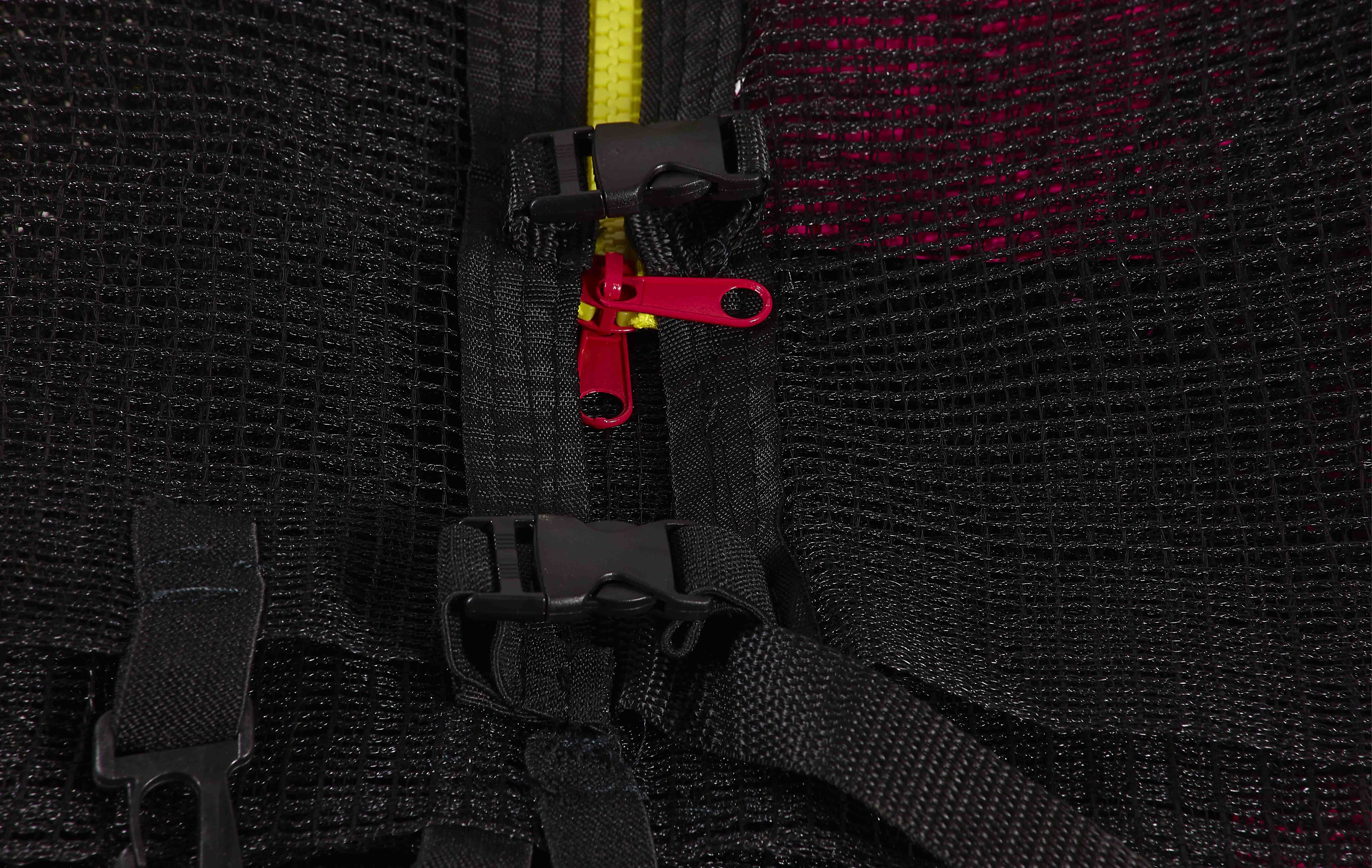 The upper protective net has a zippered entrance with a safety lock to prevent unintentional release.