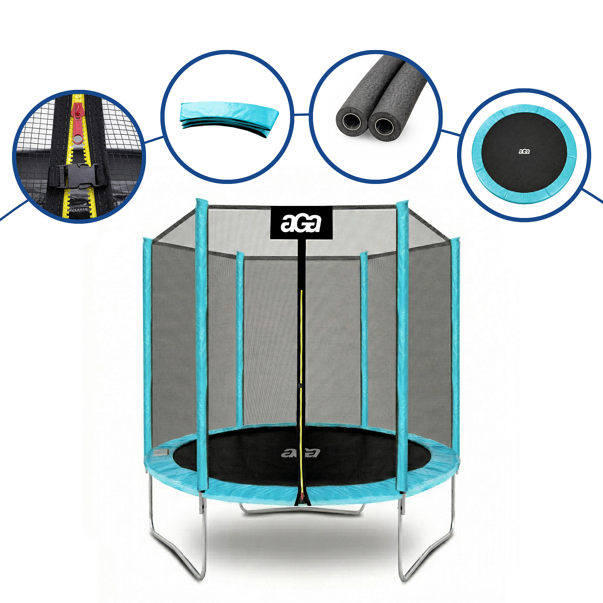 Specifications of Aga SPORT TOP 180 cm trampoline with safety net.