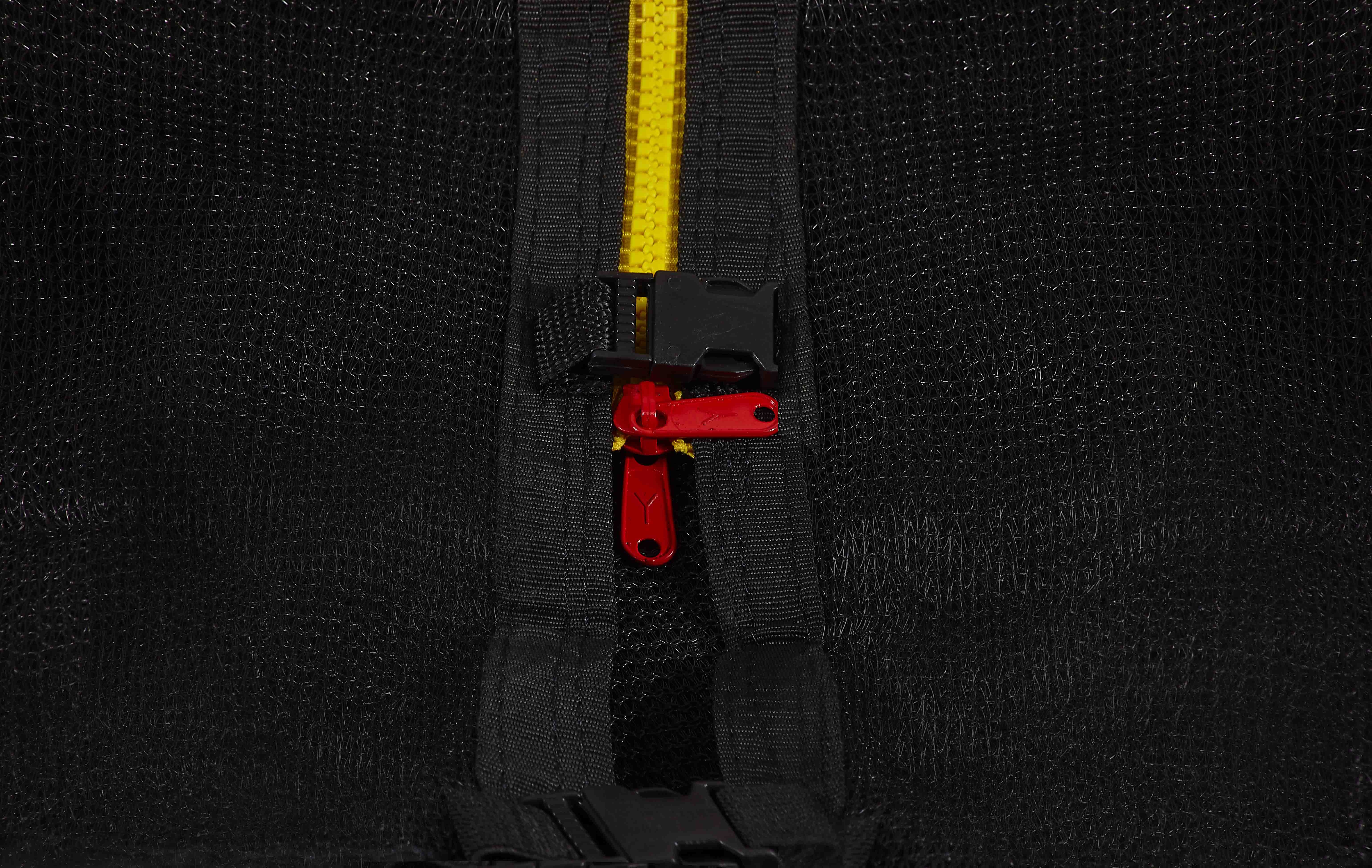 The upper protective net has a zippered entrance with a safety lock to prevent unintentional release.