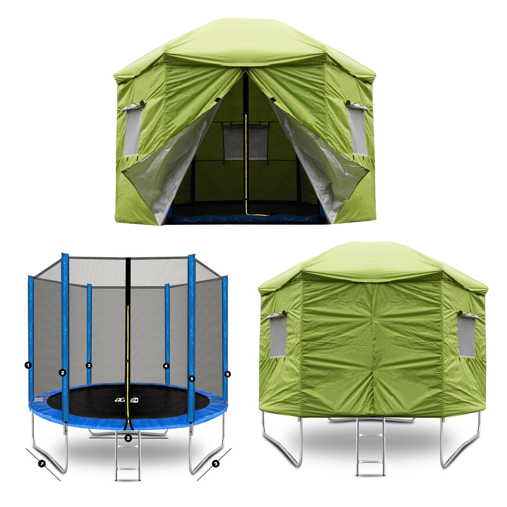 The trampoline tent is a great accessory that practically and purposefully expands the possibilities of using your trampoline.