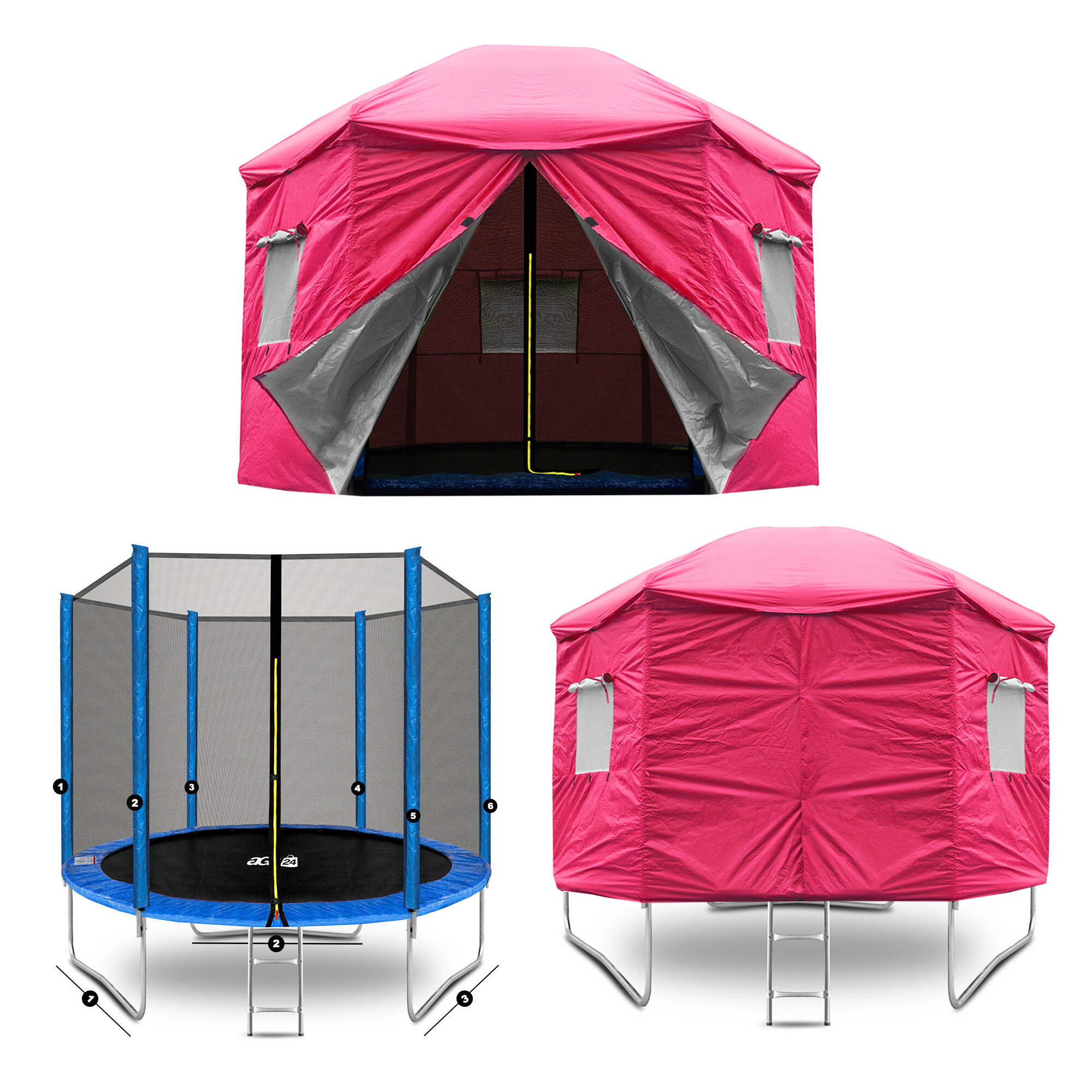 The trampoline tent is a great accessory that practically and purposefully expands the possibilities of using your trampoline.