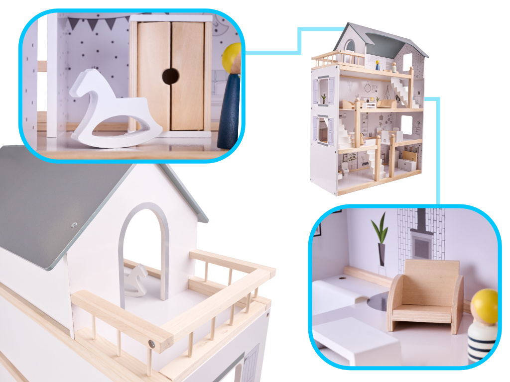 The wooden dollhouse was crafted with exceptional care and attention to detail, so it will capture the attention not only of your child but also of you and your guests!Beautiful, stylish design fits into both modern and classic interiors, complementing and pleasantly fine-tuning them.