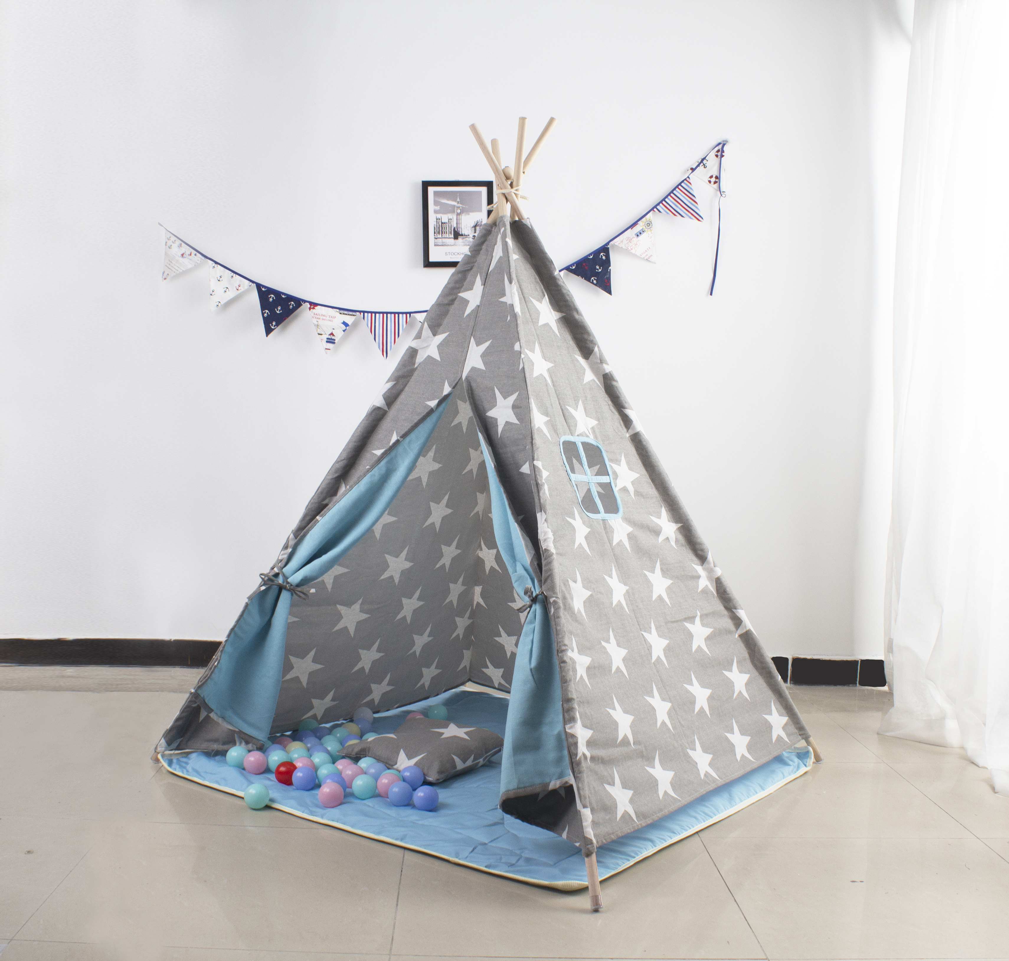 Aga4Kids Baby Teepee Stars Grey and Blue