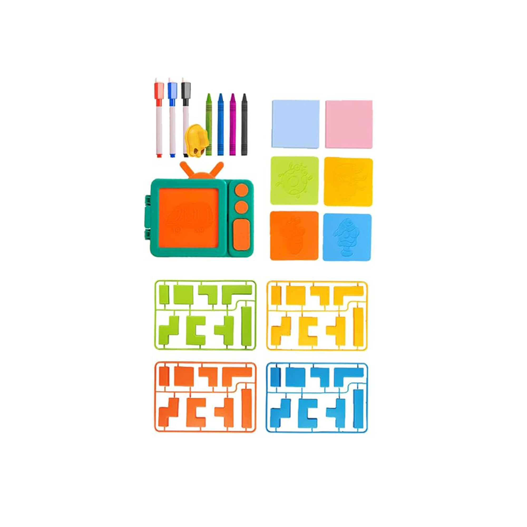 Aga4Kids Children's Whiteboard comes with a rich set of accessories, ensuring that your children have everything they need for immediate fun - 4 crayons, 3 markers, 1 eraser sponge, sticky notes, tracing templates, and a board.