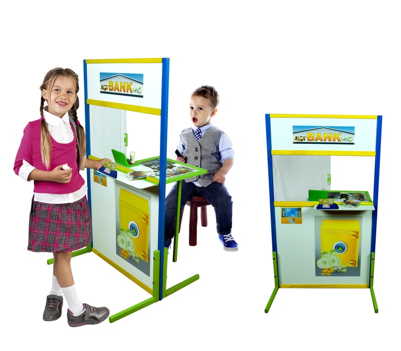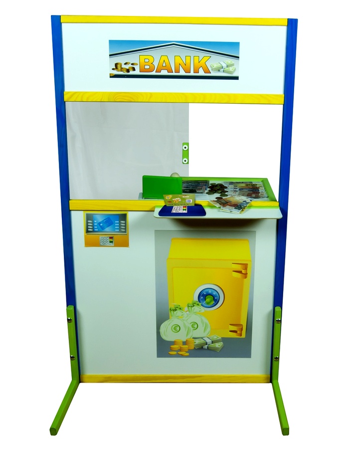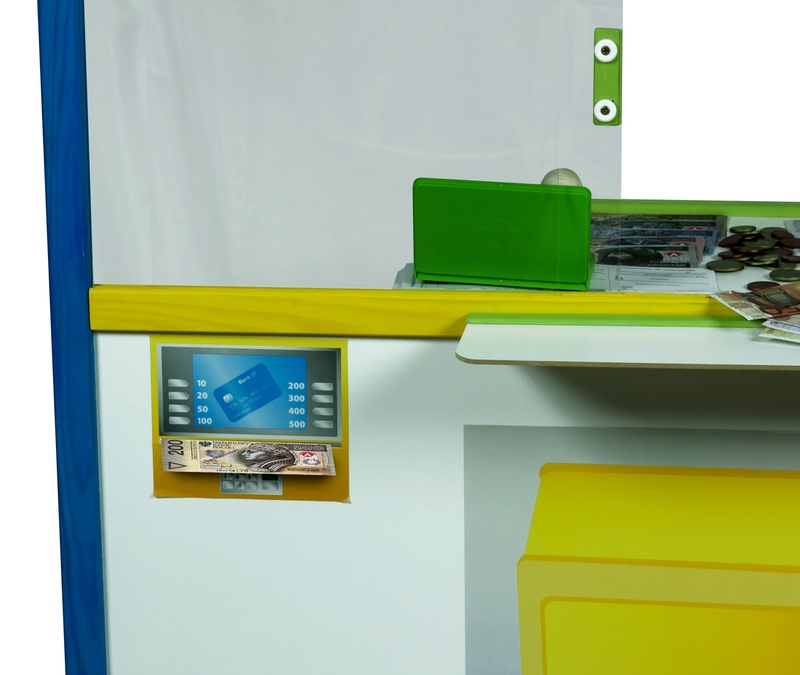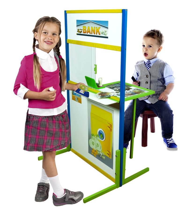 Children's chalkboard in the form of a bank, with a wealth of accessories and extras, from Aga4Kids.