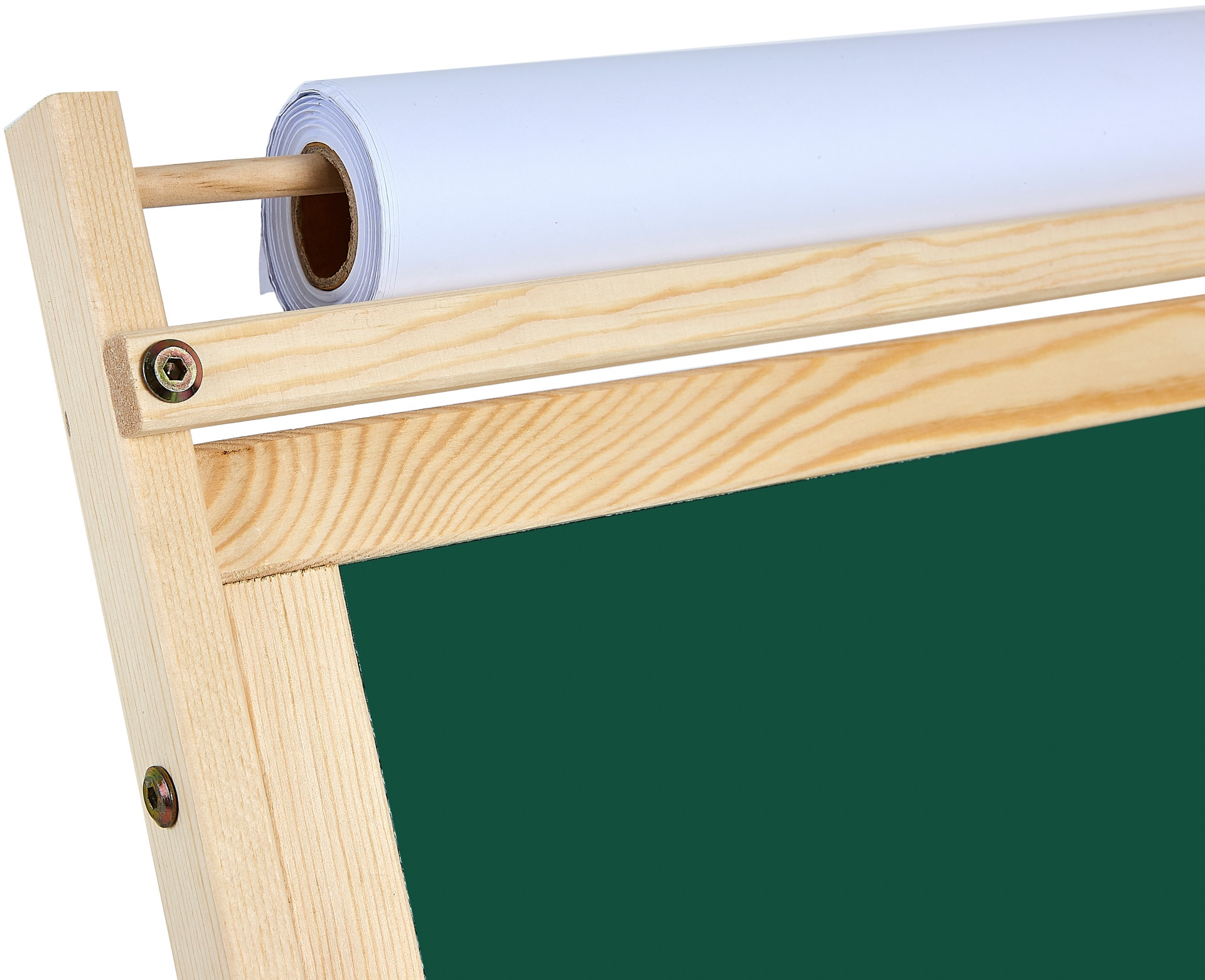 The finished pictures can be attached to the board using magnets. The paper roll is easily replaceable.