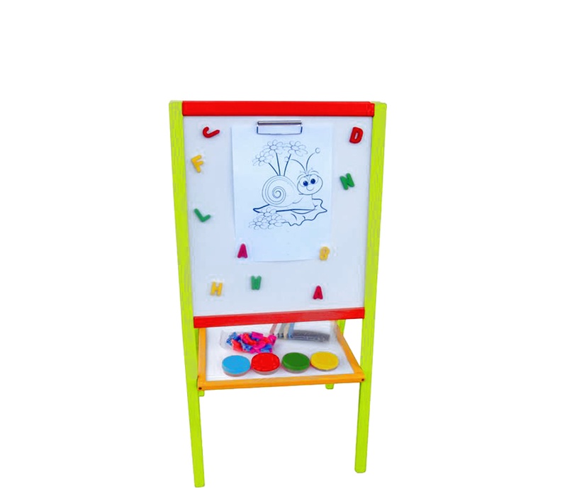 - Set includes - 2 boards, 5 colored chalks, 1 marker, 4 paint cups, letters, 1 sponge, 1 cloth, 1 coloring book