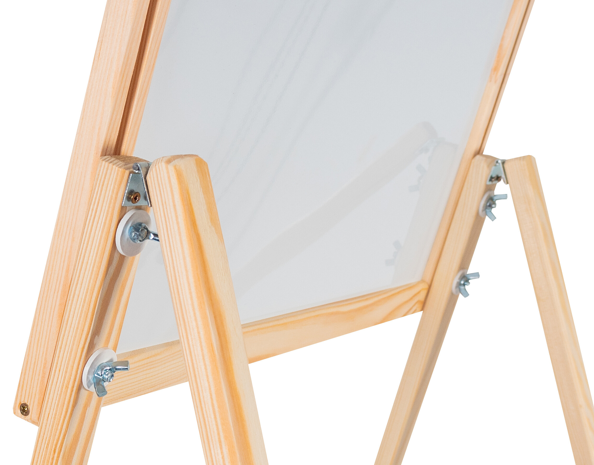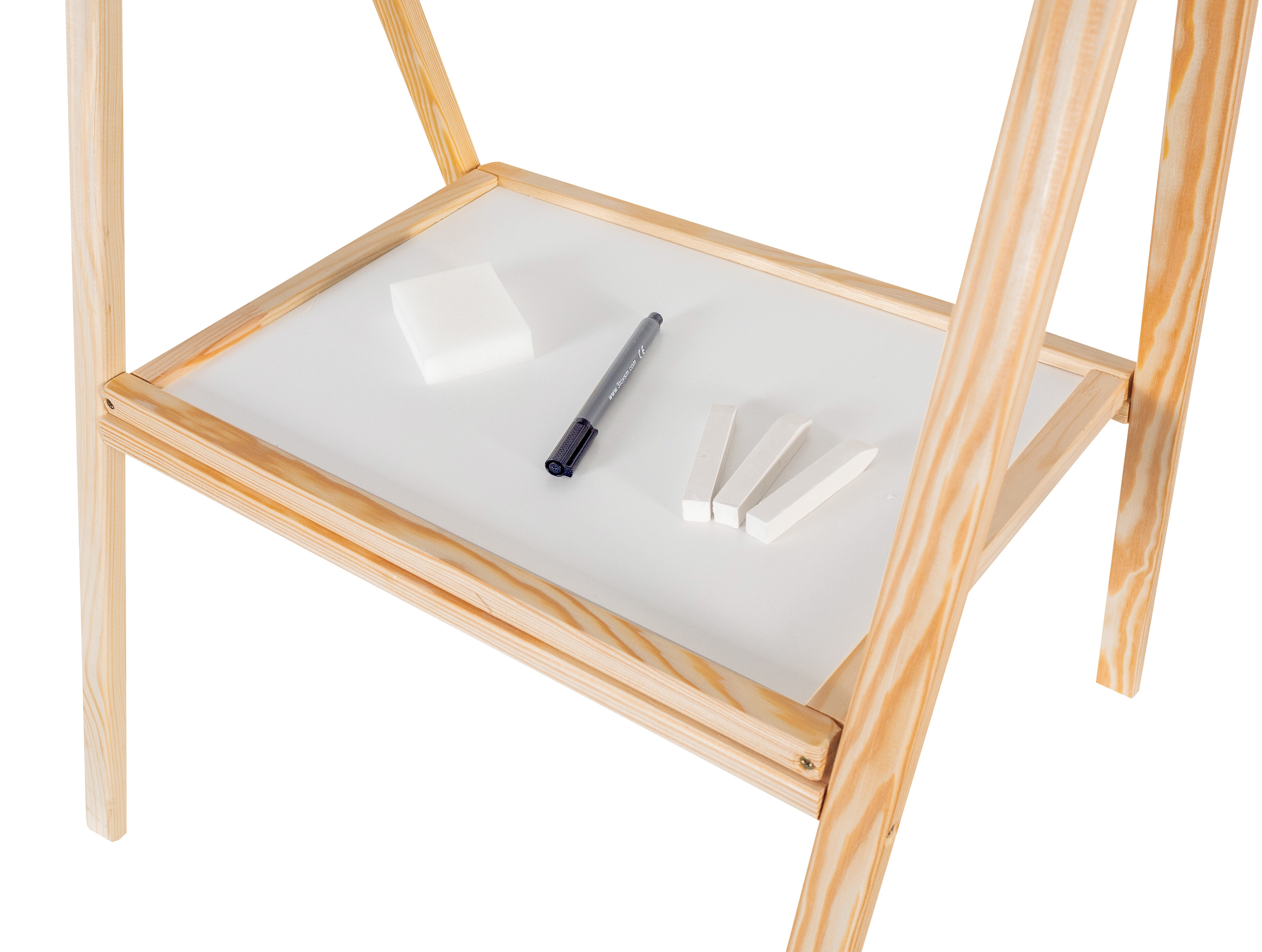 On the black side of the board, children can draw with classic chalk, and on the other, white side, with colored markers.