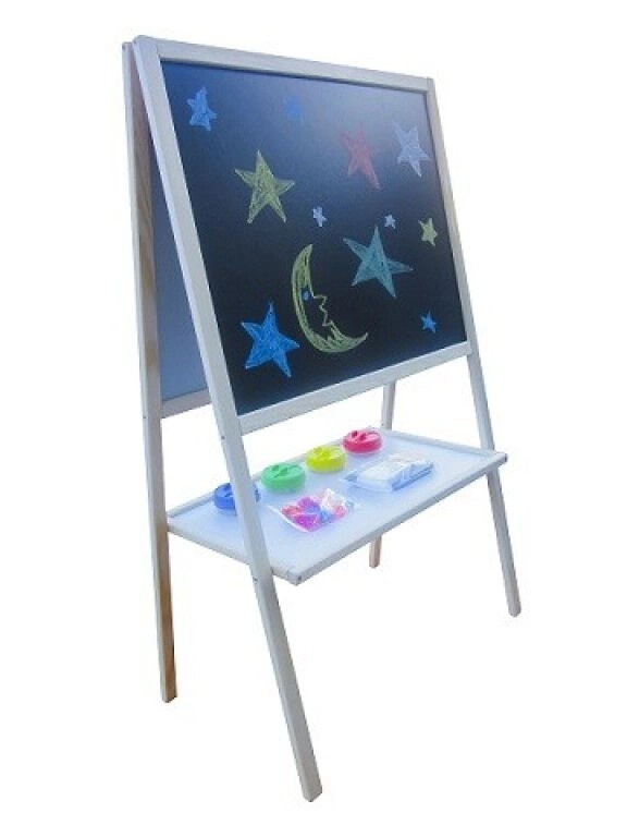 Double-sided children's magnetic board with a storage shelf, on a practical stand, from the company Aga4Kids.