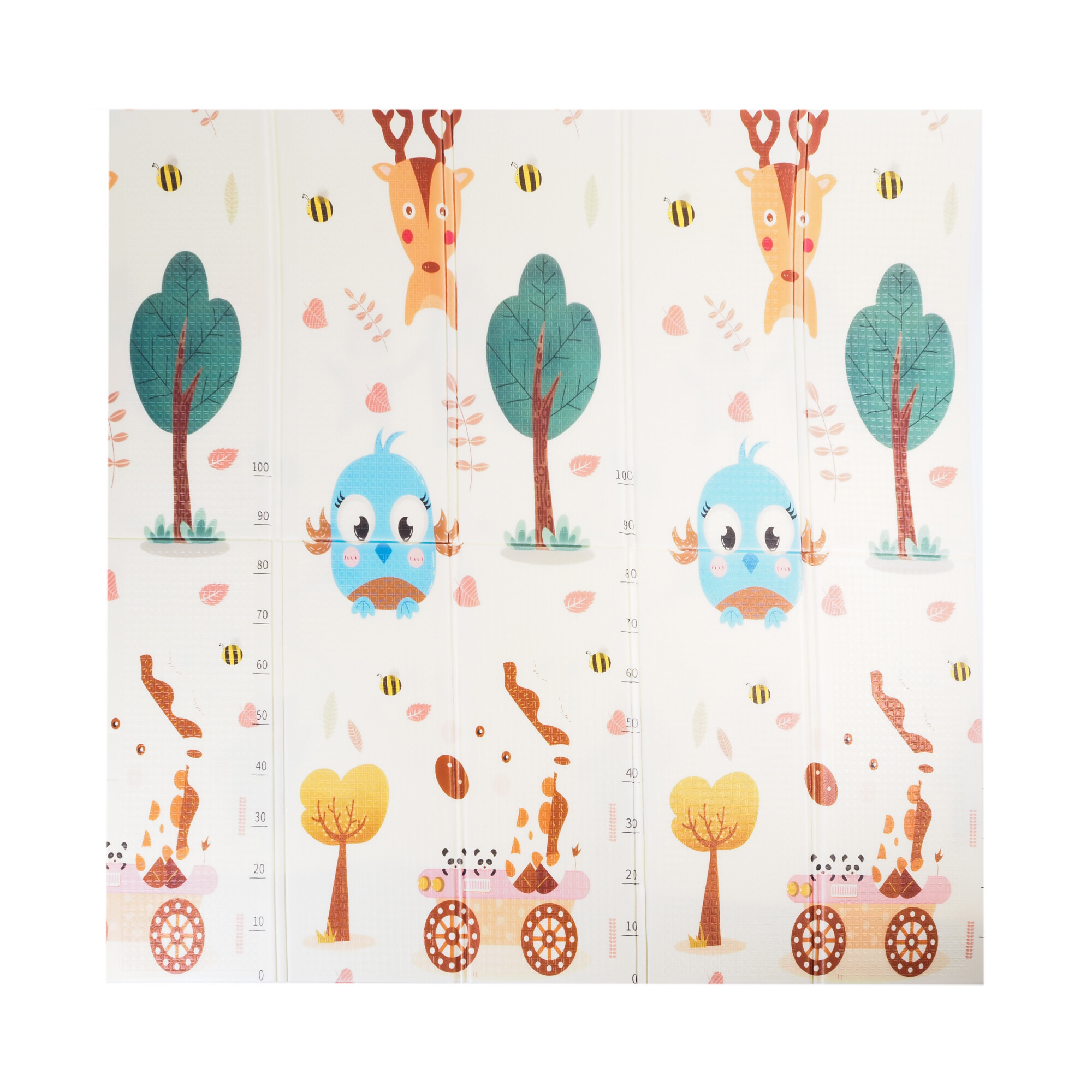The play mat can be folded into a practical portable bag that is included. The mat does not take up unnecessary space anywhere, is easy to store, and is easy to carry.