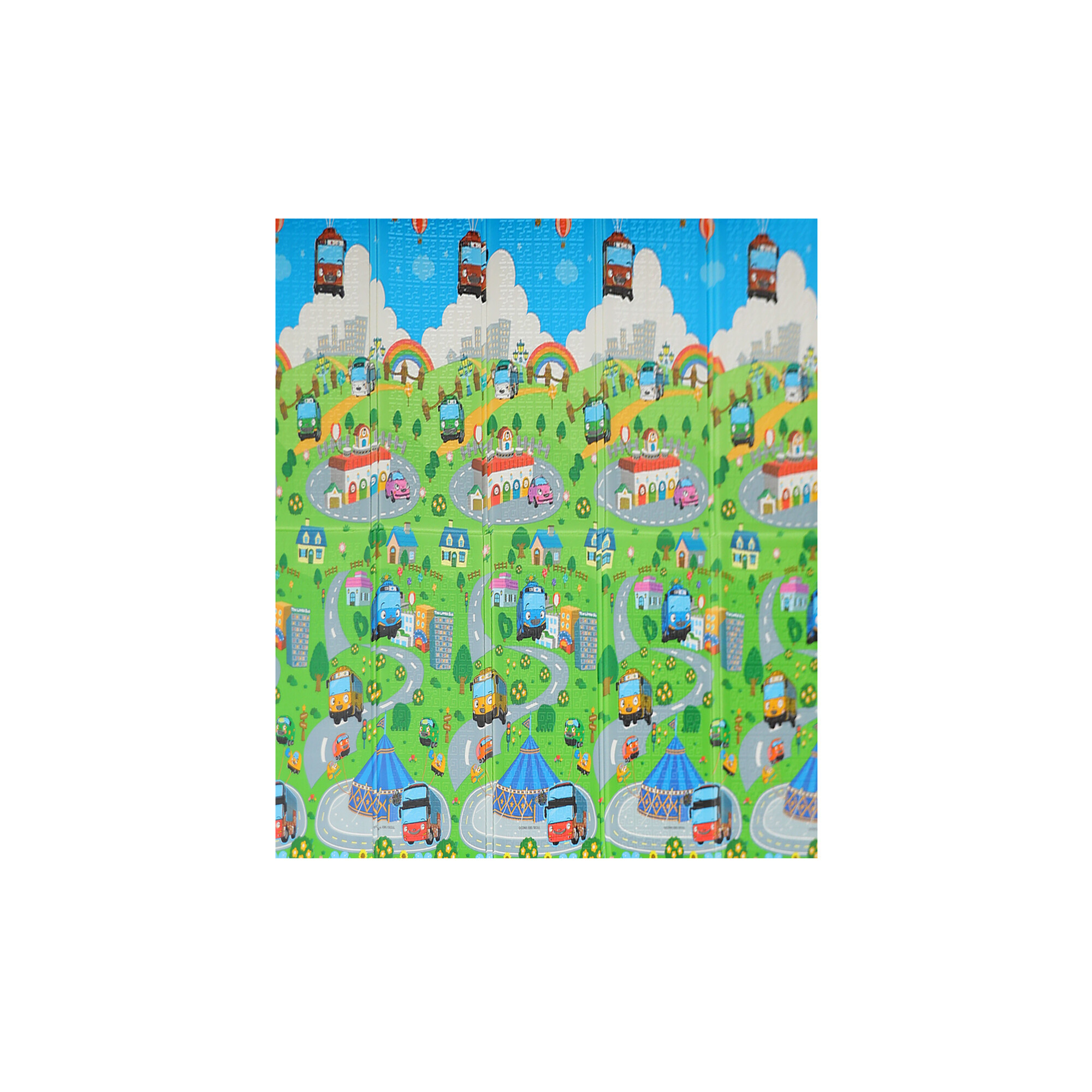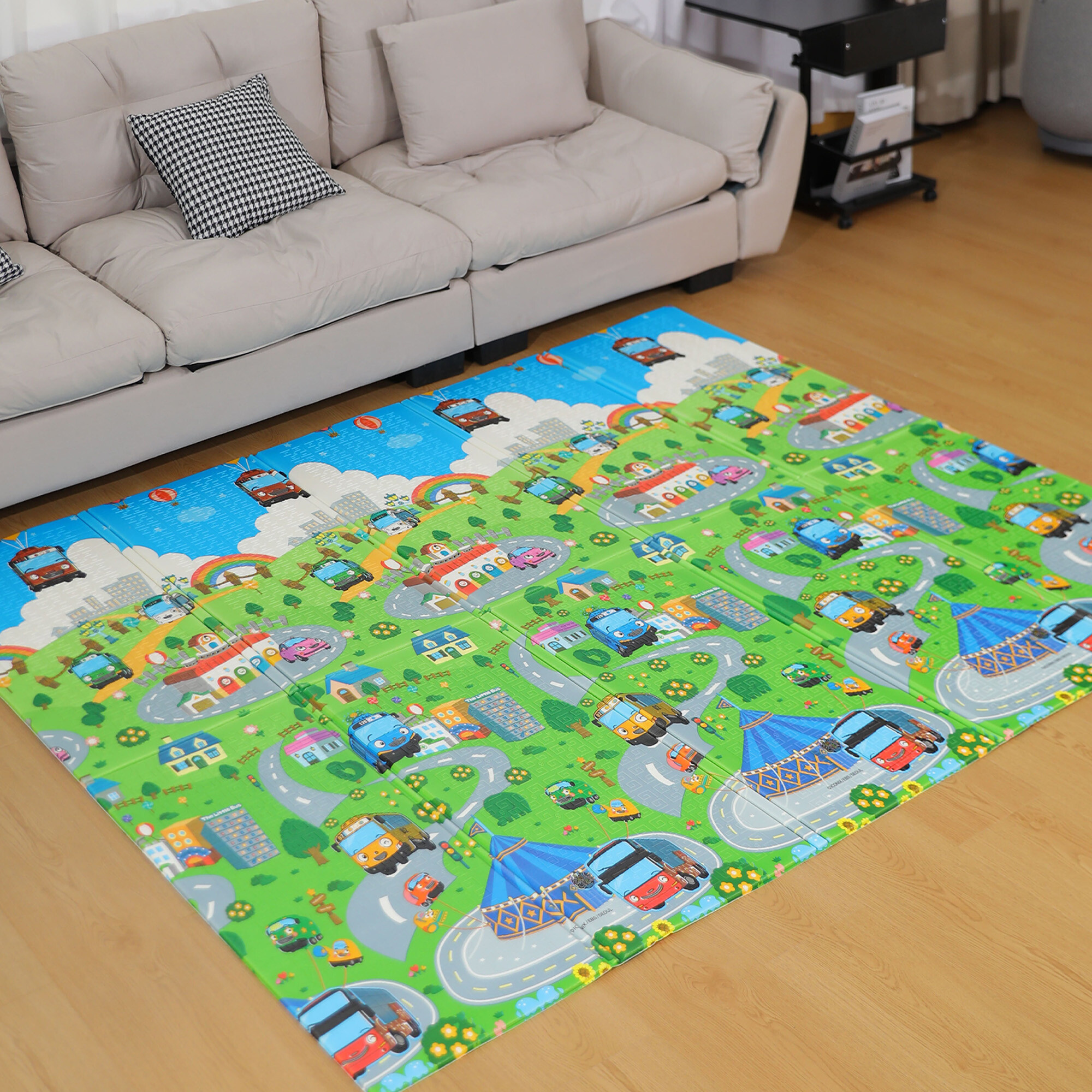 The play mat features double-sided printing with cheerful designs, and the non-slip surface ensures the safety of every game.