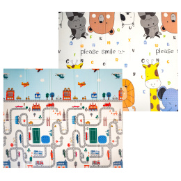 The double-sided foam play mat has versatile uses. It is an indispensable helper not only for playing and developing your children's motor skills, but it can also mitigate the consequences of minor falls when the child is trying their first steps or practicing sitting.