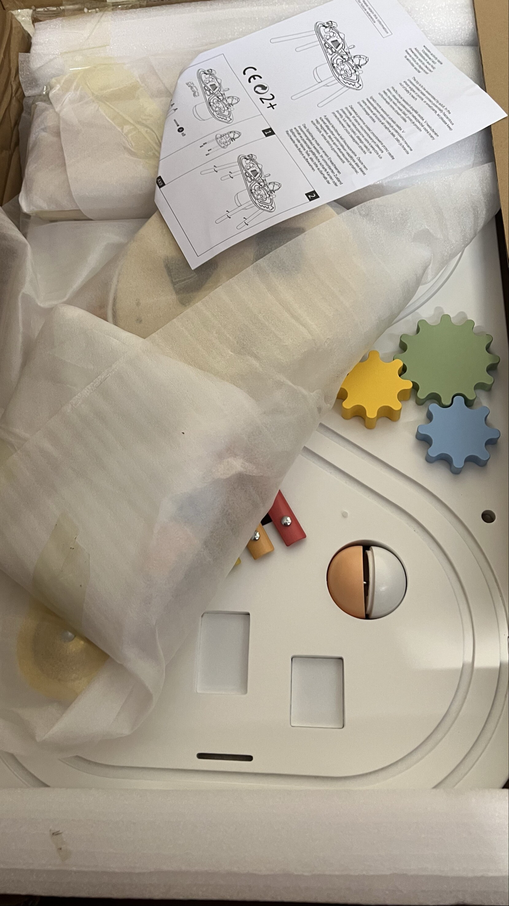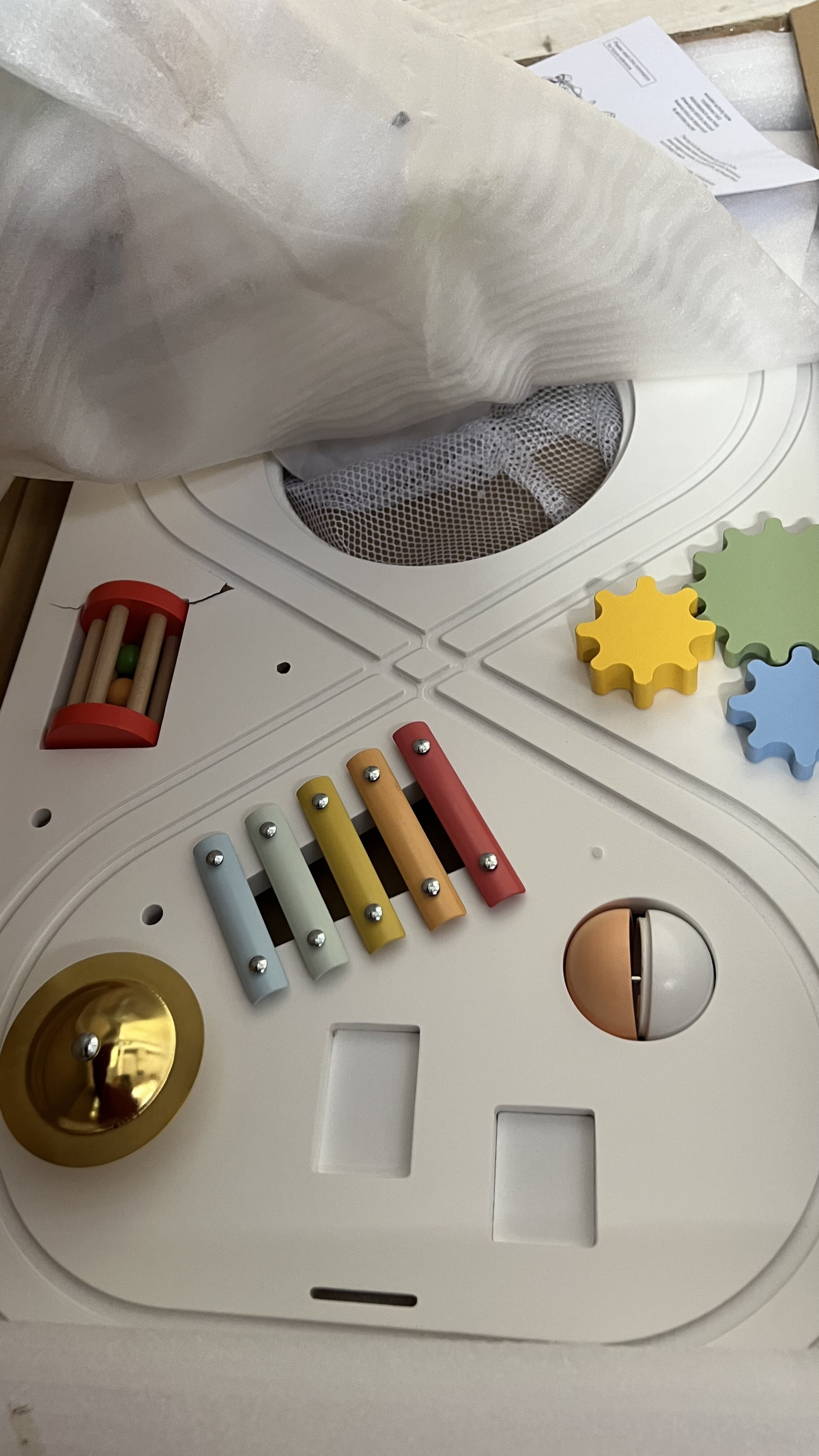 A wooden interactive table with cymbals and a racetrack is a perfect educational toy inspired by the Montessori method, combining learning with fun and providing children with fascinating experiences.Full description