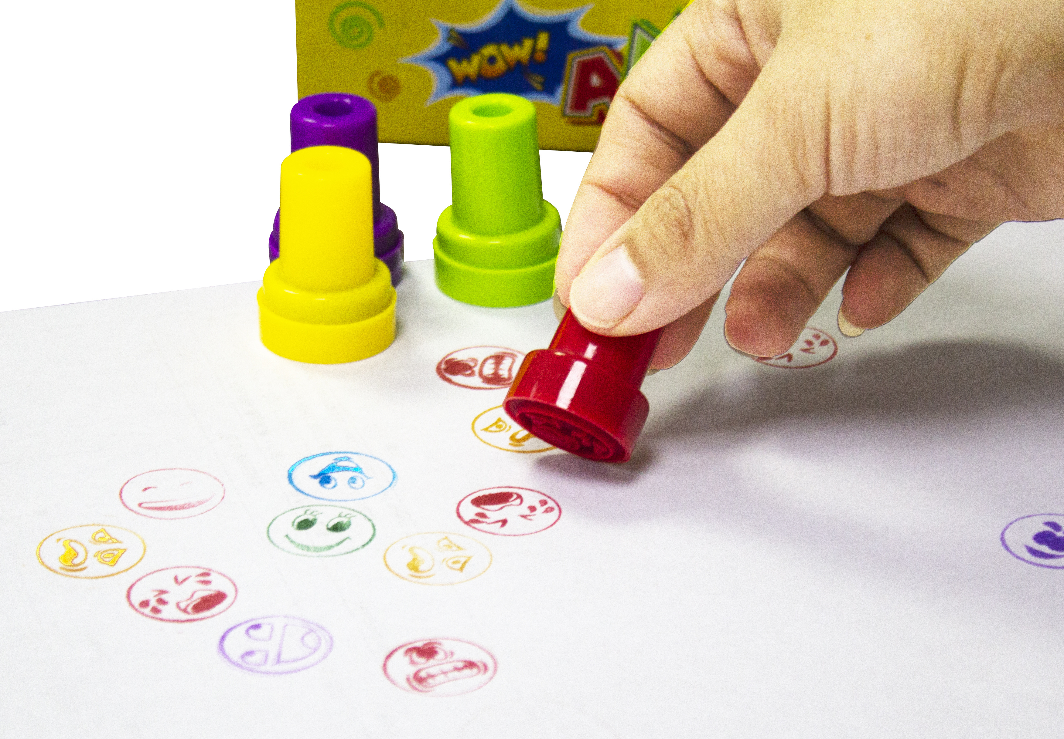 They contain safe ink and the stamps have no sharp edges. They are completely safe and adapted for use by children.