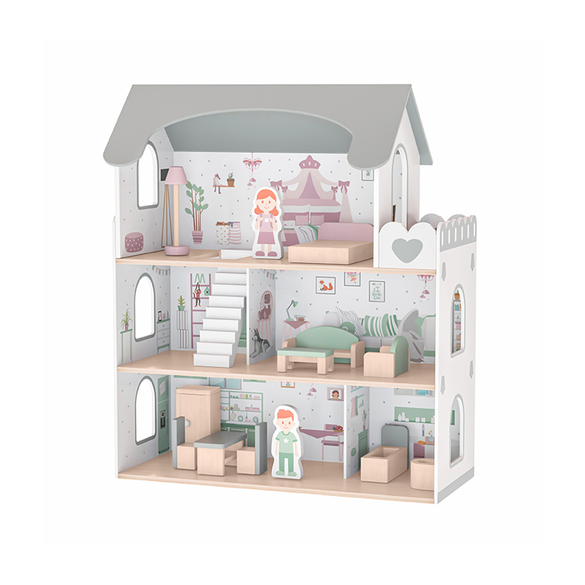 This beautiful three-story dollhouse is designed to bring joy and endless hours of fun to every little girl. With its carefully thought-out design and quality craftsmanship, it will become a favorite place for all dolls and their stories.
