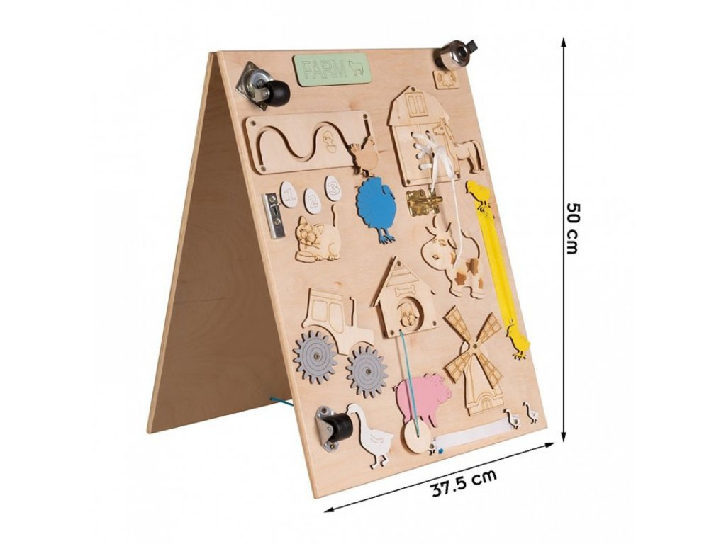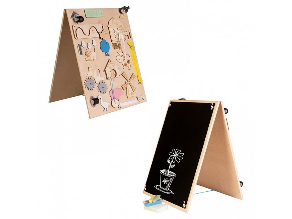 On one side of the board, little hands discover stimuli to encourage logical thinking. Shoelaces are an accessible way to learn to tie, a classic zipper will encourage creativity.