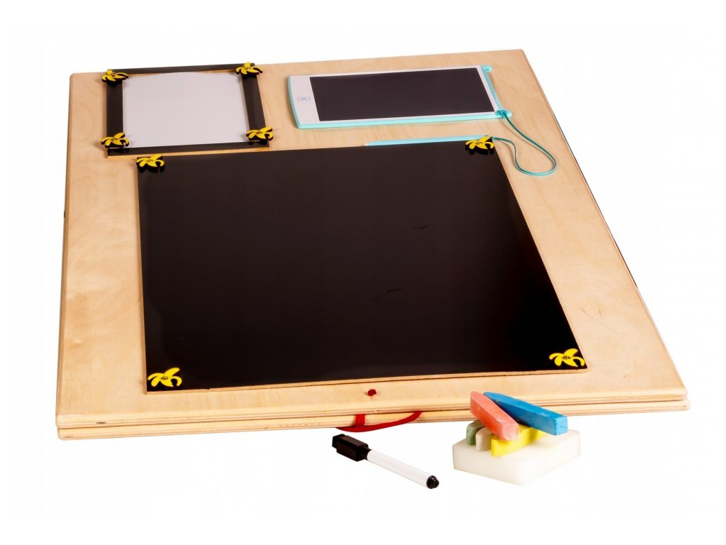 The other black side of the board is for drawing with chalk.It also includes a tablet and a magnetic board. The boards are orientated towards the development of fine motor skills, promoting patience and skill acquisition of the child. Provide your children with this attractive board and give them moments full of fun and education!