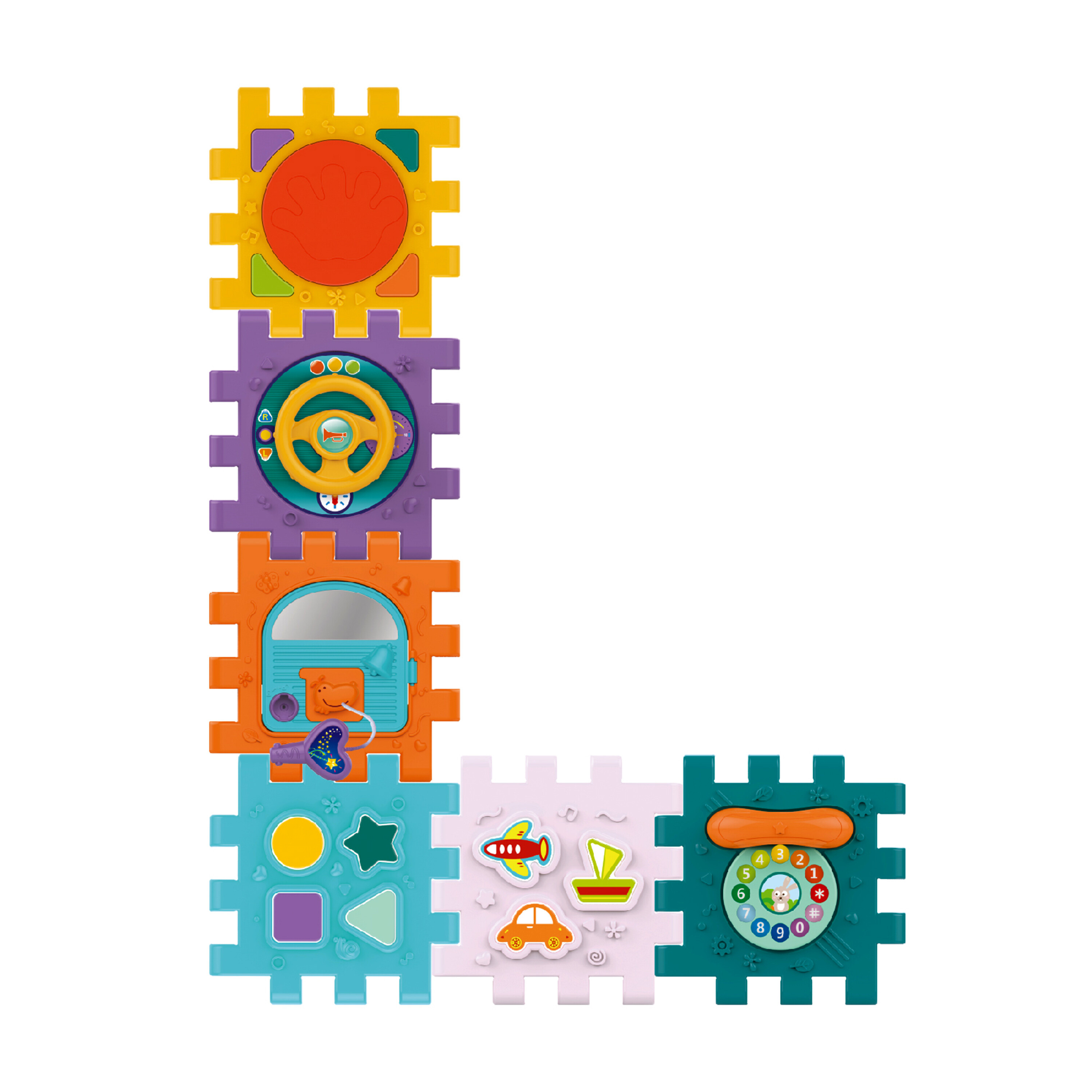 Each of the 6 sides of the cube offers different entertainment. The cube is equipped with sound and light effects.Individual walls can be freely combined with each other based on the principle of connecting puzzles.