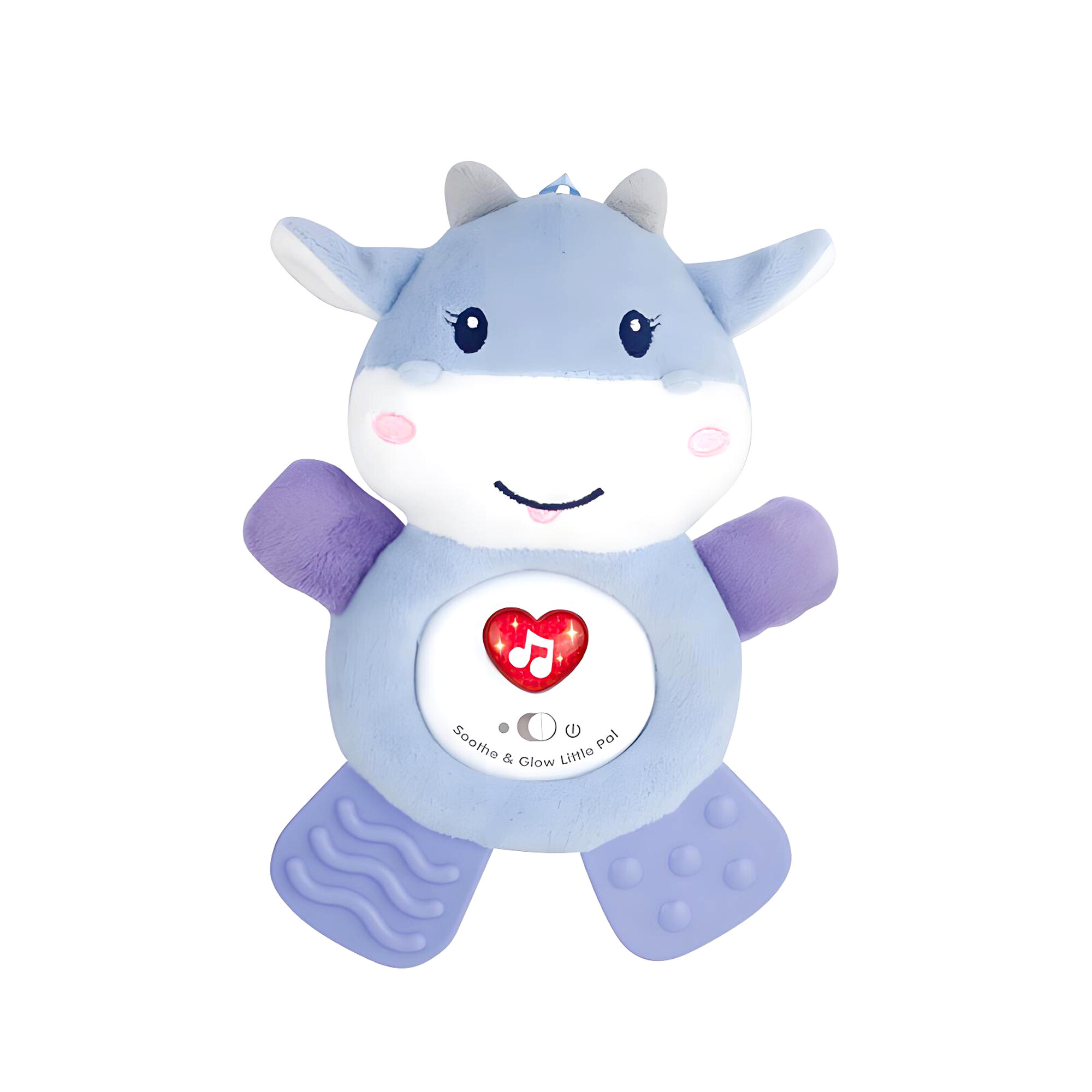 Pressing the heart on the cow's belly activates cheerful melodies and the heart starts to light up in rhythm with the music. It stimulates your baby's hearing and sight and supports their sensory development.You can easily hang the cow on a stroller, crib, baby play mat with a gym, or in the car. Your baby will always have their faithful companion within reach.