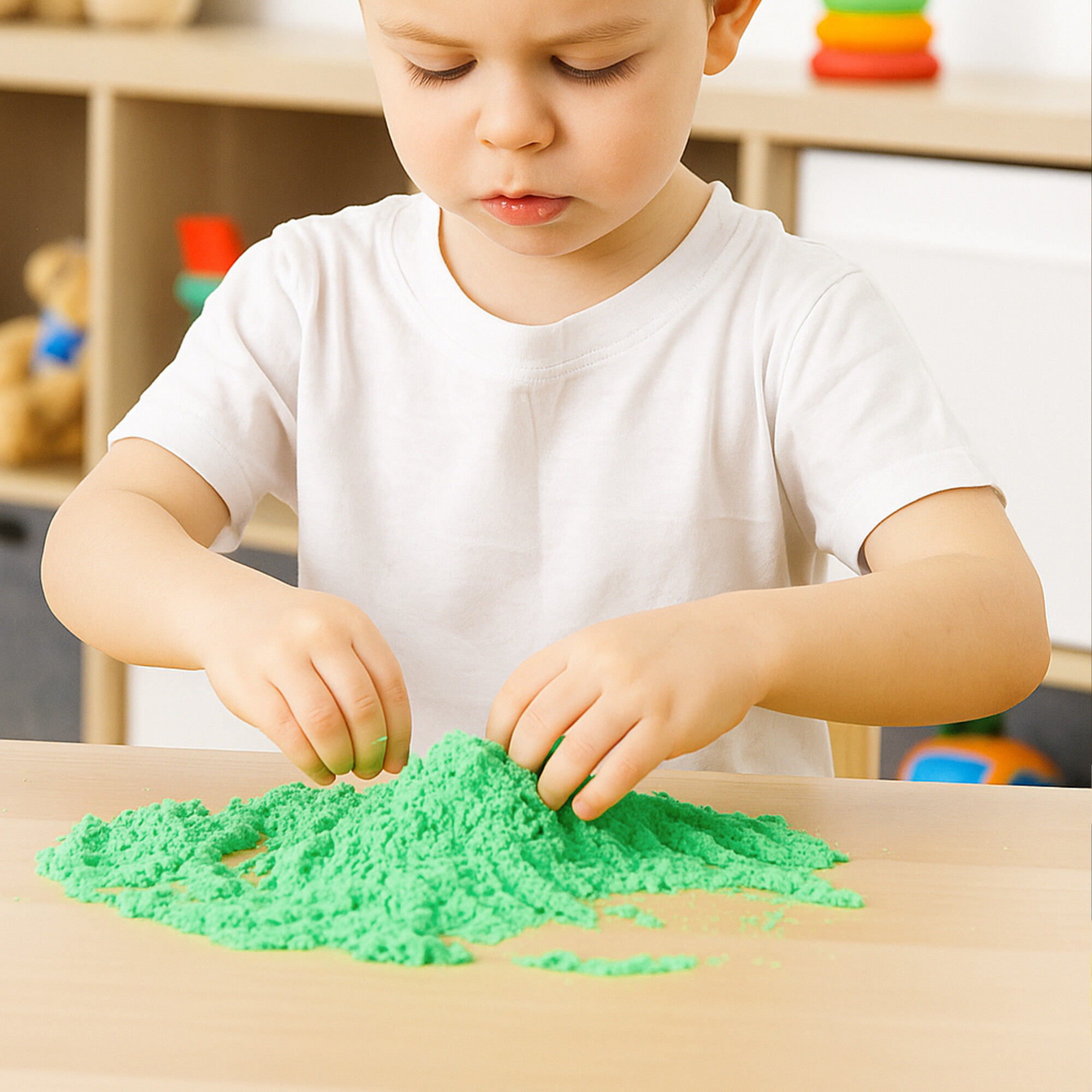 - Playing with kinetic sand develops fine motor skills, creativity, tactile perception, and creative imagination in children