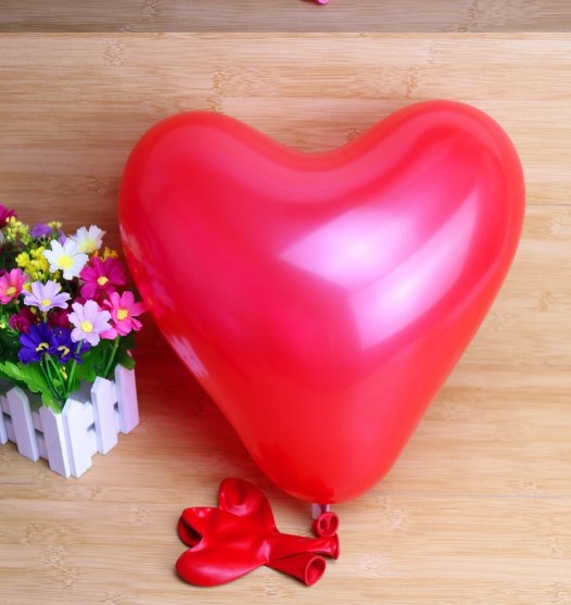 The inflatable balloon is heart-shaped and can be inflated with helium or air.