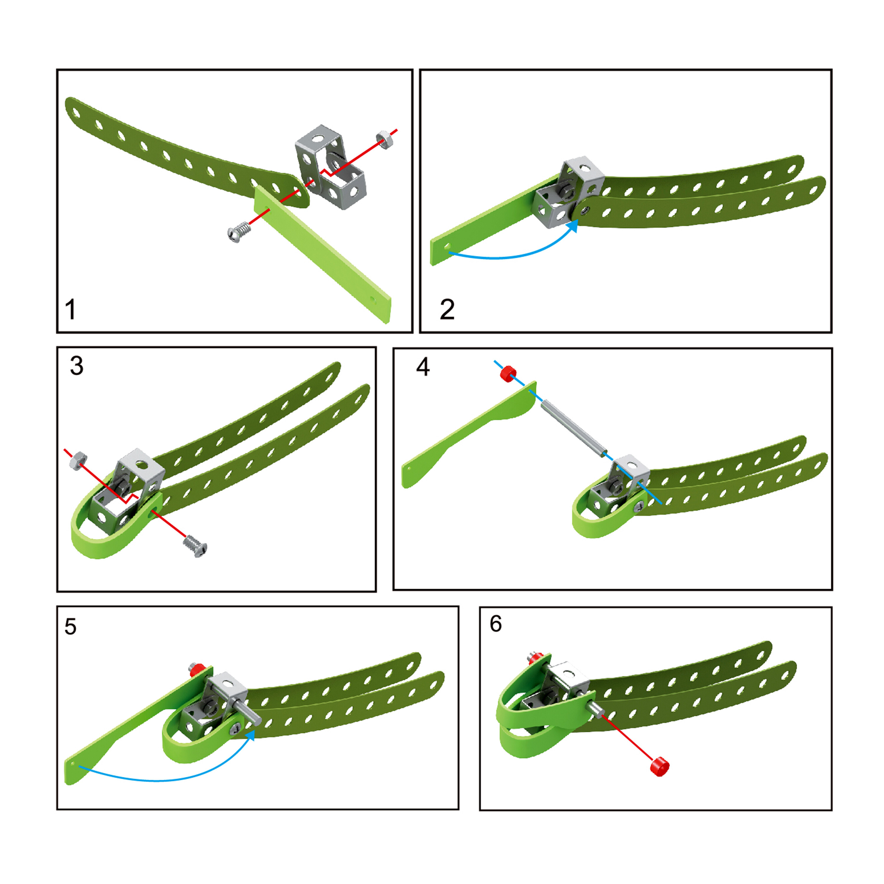 The construction is intuitive and simple thanks to the included instructions.The construction set contains 141 different pieces that can be connected using screws and nuts.
