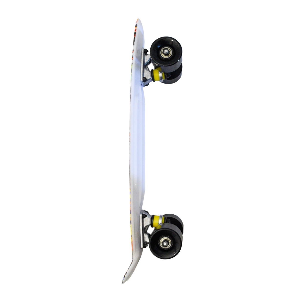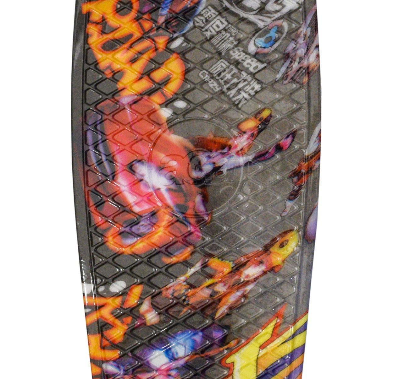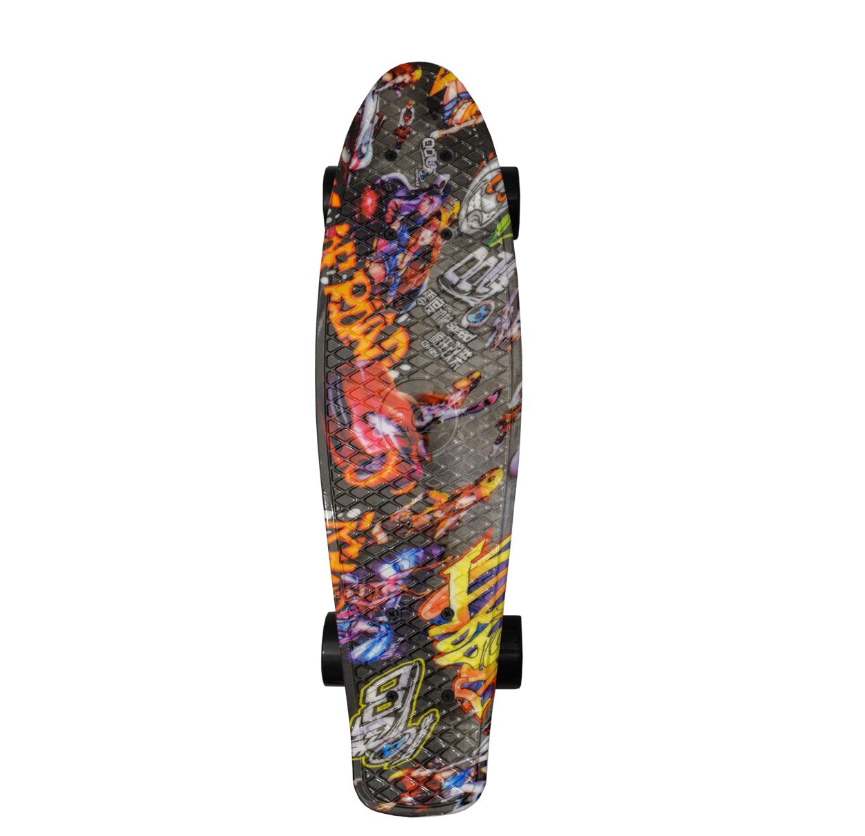 The advantage of this skateboard is the practical grid on the top of the deck, which prevents unwanted slipping of the foot off the deck.