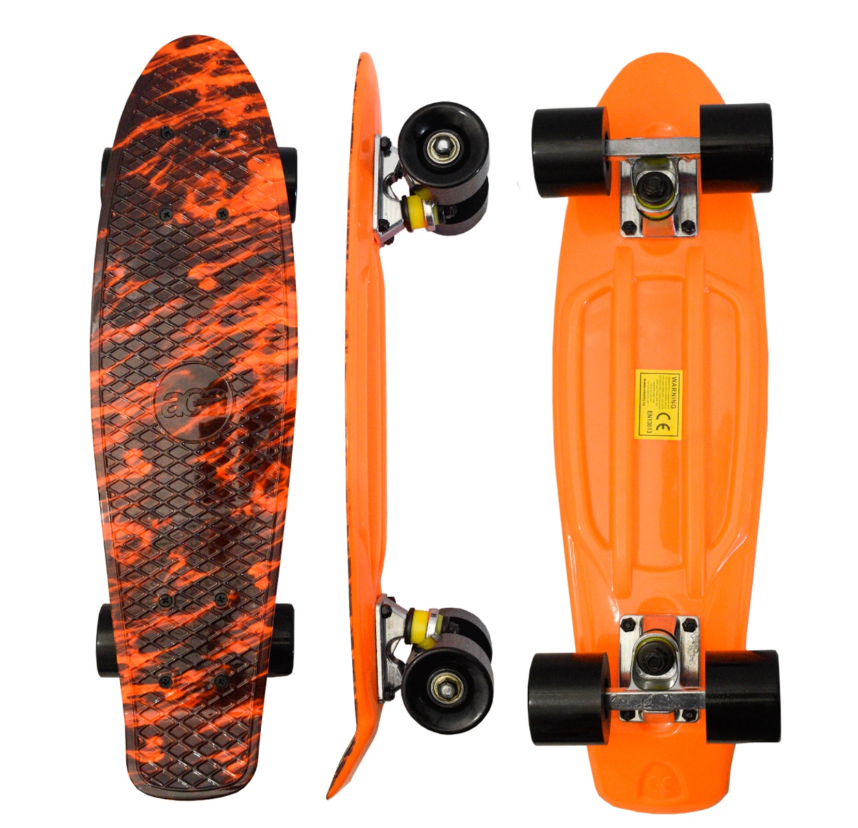 The advantage of this skateboard is the practical grid on the top of the deck, which prevents unwanted slipping of the foot off the deck.