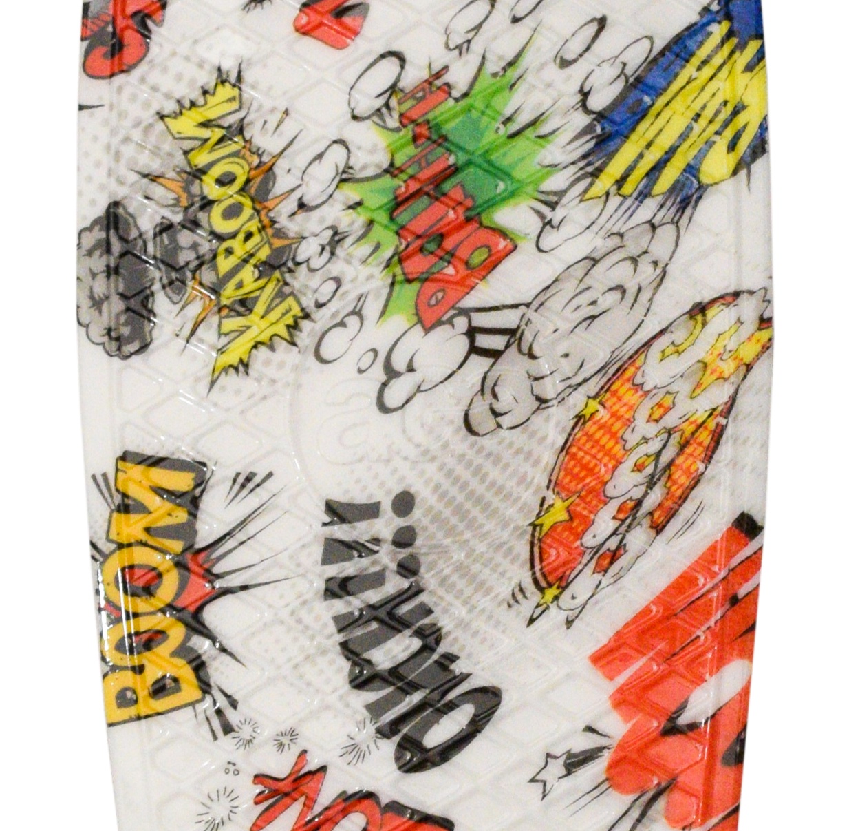 The skateboard is made of polypropylene (PP) plastic. The use of this type of material ensures higher durability and at the same time less weight compared to regular plywood skateboards.