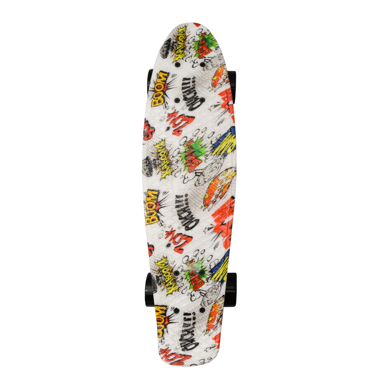The advantage of this skateboard is the practical grid on the top of the deck, which prevents unwanted slipping of the foot off the deck.