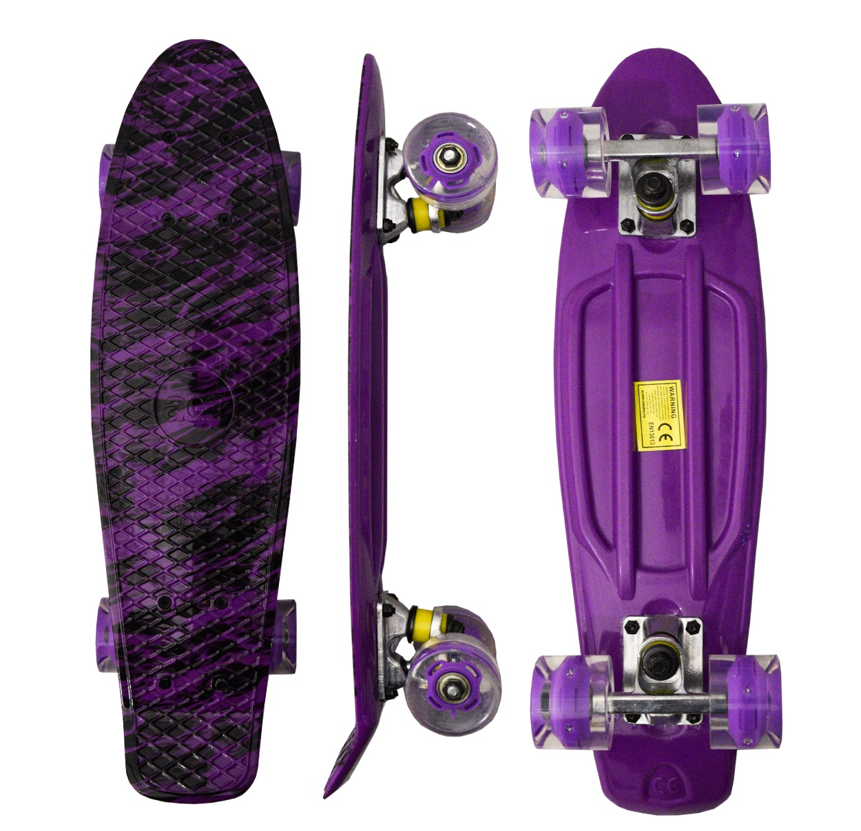 The advantage of this skateboard is the practical gridding on the top of the board, which prevents accidental slipping of the foot from the board.