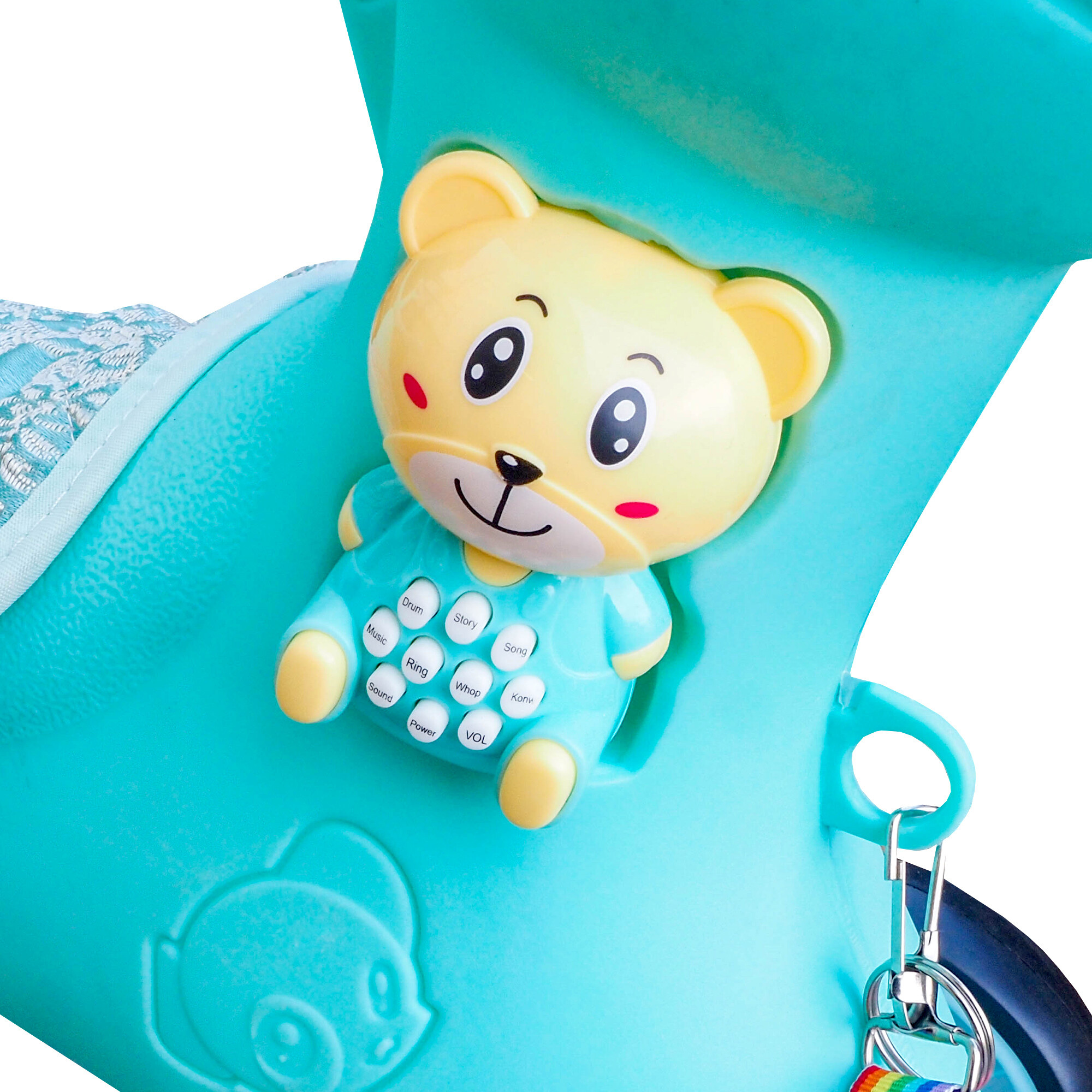That is why the Aga4Kids Plastic Rocking Horse is equipped with a safety belt, ensuring that your child will be safe while rocking. The belt is easily adjustable and comfortable, so you don't have to worry about your child falling out during play.On the neck of the horse, there is an interactive teddy bear that makes various sounds and melodies.
