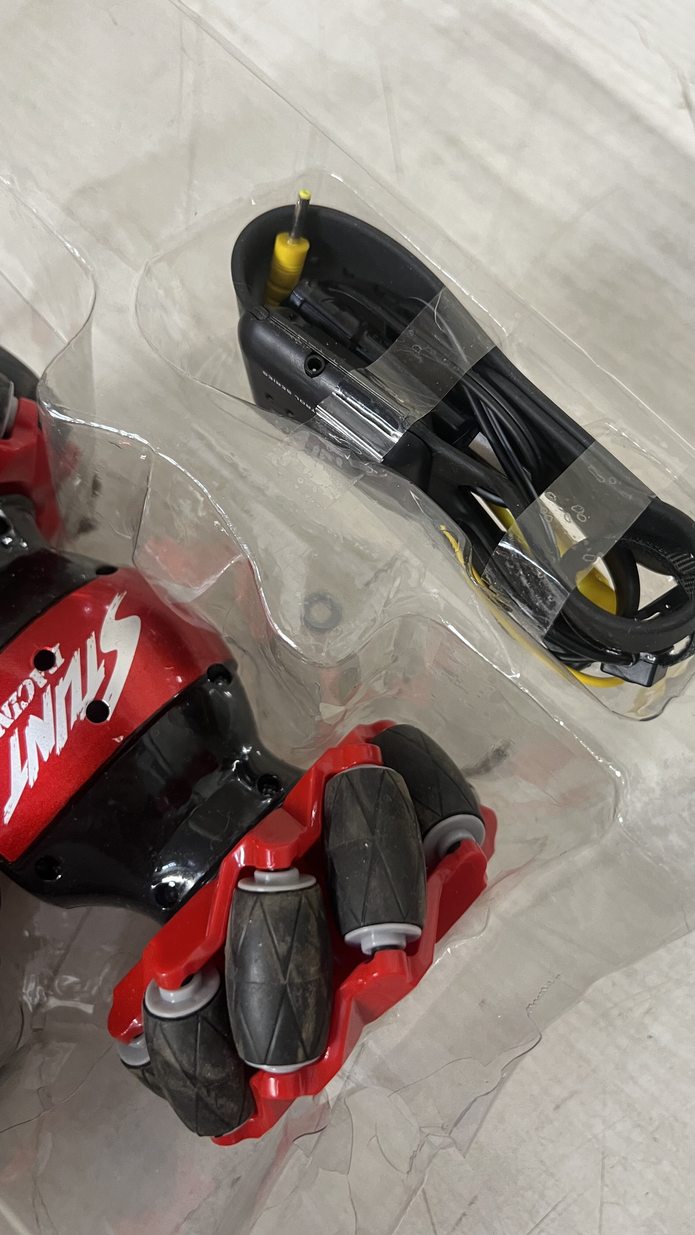 The stunt car has already been under warranty claims, shows signs of use, repaired, fully functional.