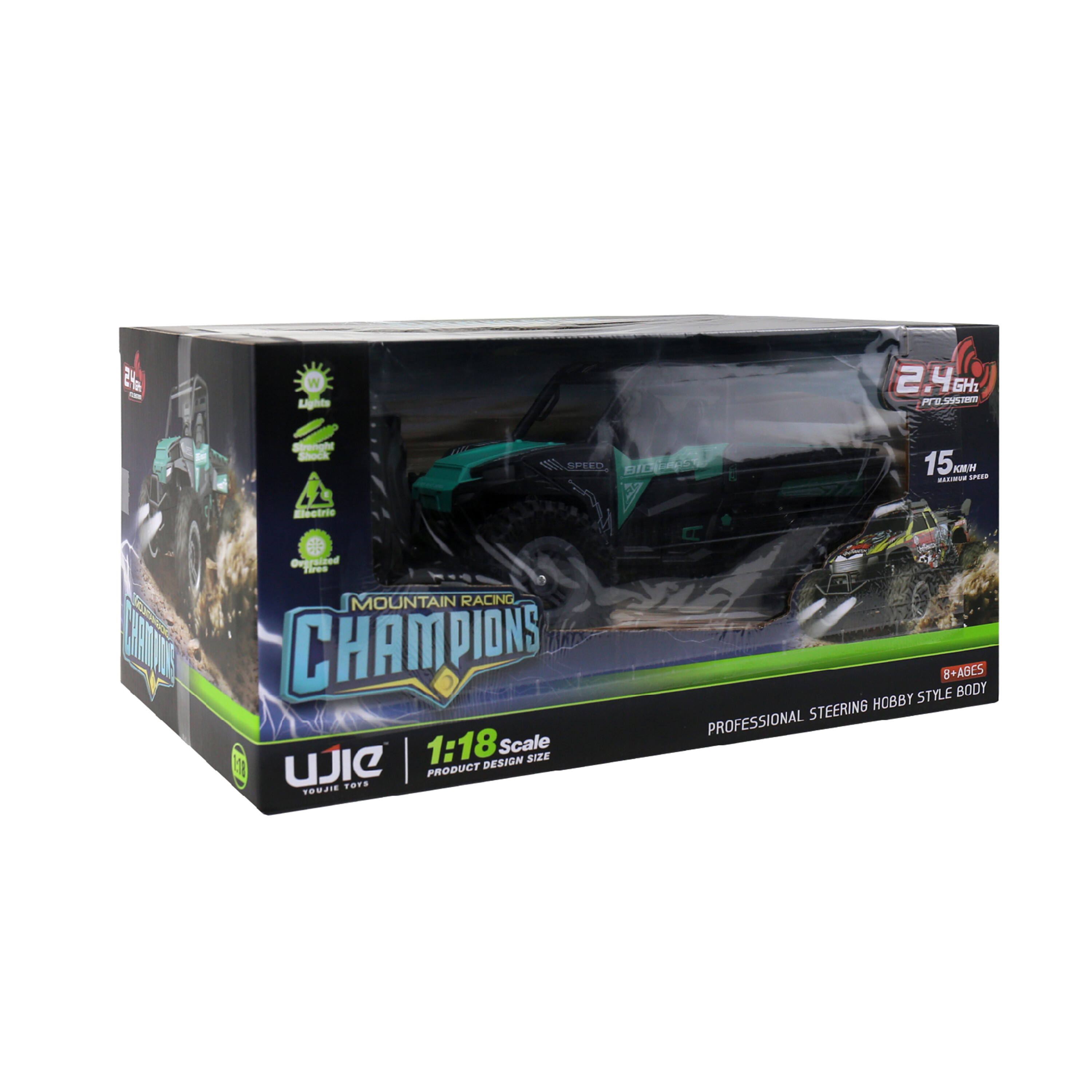The off-road car has excellent driving characteristics on gravel, sand, asphalt, and other surfaces. Robust construction from high-quality components gives the model excellent resistance to damage.Flexibly mounted axles and high-travel shock absorbers make it the perfect companion for extreme off-road challenges.