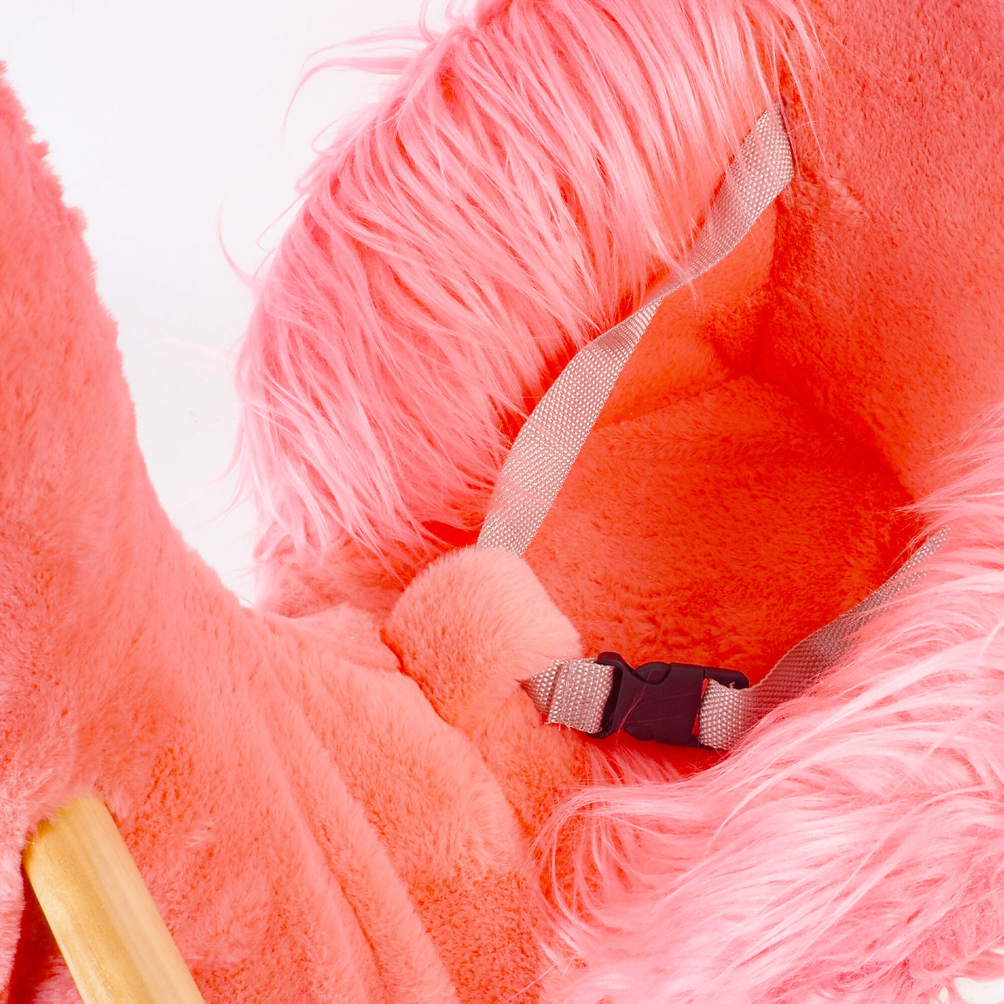 The rocking flamingo hides many surprises and provides entertainment for hours. It is made from high-quality materials, tailored to the child to provide as much fun and comfort as possible.